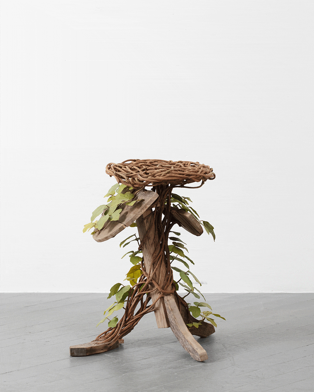 Growing up in Birmingham, Alabama, Lin encountered kudzu as an ordinary feature of the natural landscape. It was only through working with the plant directly that its deeper potential revealed itself to her. “The history of the kudzu vine is fascinating, but I didn’t fully grasp how it could take on any shape, both literally and metaphorically, until I began harvesting it myself and weaving it around my structures,” she tells STIR. “The vine’s physical properties opened up possibilities for adding storytelling details, like how the vine could ‘eat into’ the furniture, or begin to grow its own freestanding structure.”