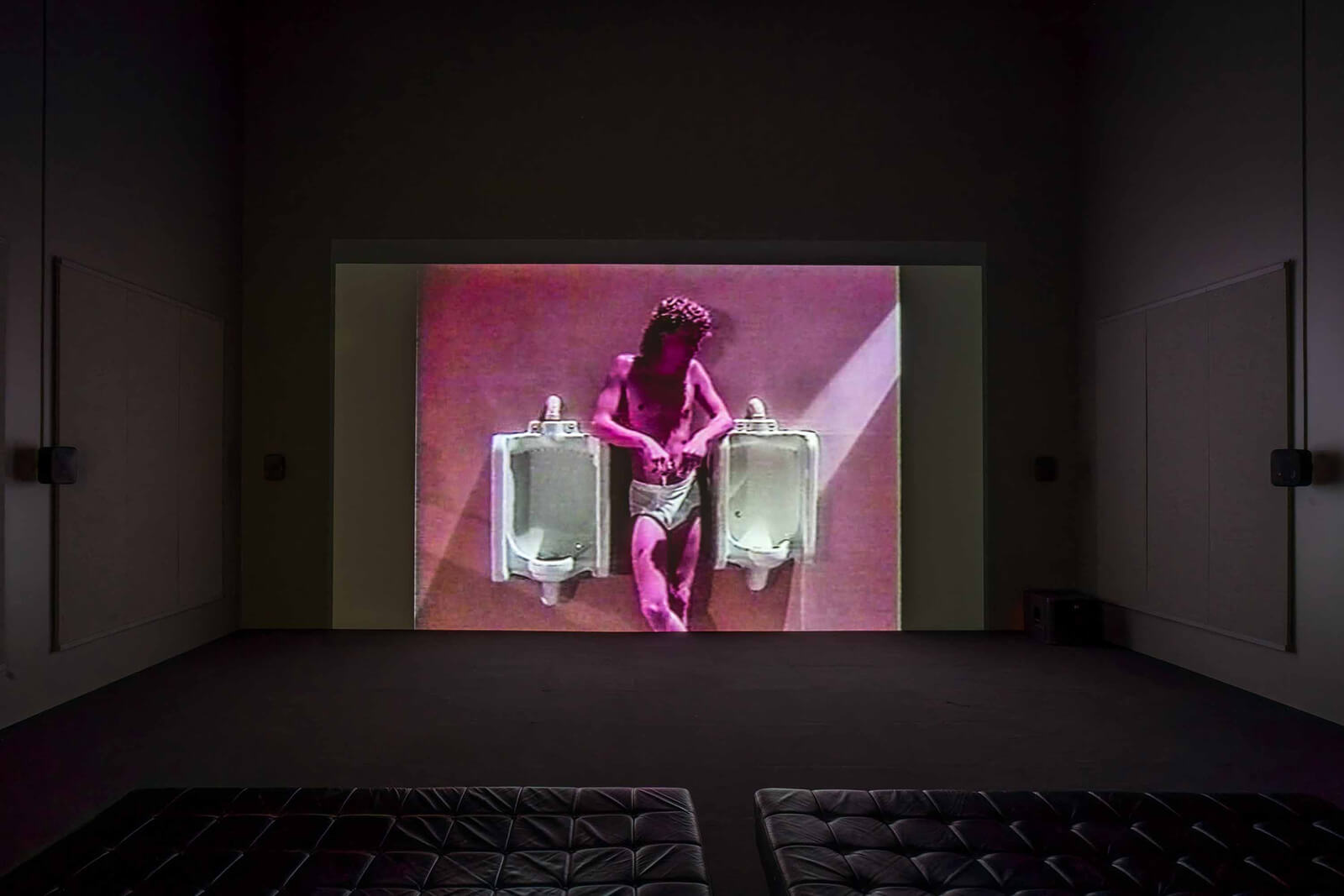 Schneider reflects on how Ischar used his artwork to create durable documents of a queer scene he worried would cease to exist. And indeed, the Belmont Rocks were eventually destroyed as part of a shoreline revetment project in 2003. Queerness must often operate out of this condition of ephemerality. A sense of loss, especially given the show’s starting point with the AIDS crisis, pervades the galleries. Frederic Moffet’s film The Magic Hedge (2016) documents Montrose Point Bird Sanctuary—a Cold War–era missile facility intended to protect Chicago from Soviet nuclear attack that the city repurposed as a public park in the 1970s. This park would then be turned into a cruising spot colloquially known as “The Magic Hedge”. Moffet’s video addresses the park’s eclectic history while showing how forces of desire, passion, paranoia and violence unexpectedly mingle in this otherwise tranquil landscape.