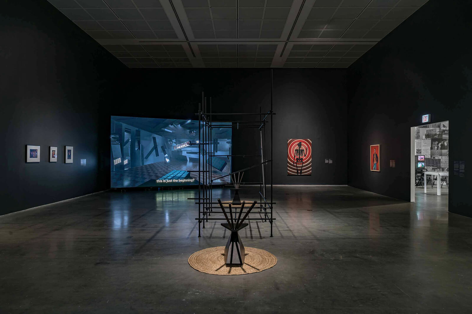For the current showcase, which remains open to the public till May 31, 2026, the art museum commissioned the American artist Edie Fake to create a new mural, The Free Clinic for Gender Affirming Care, that reflects on the anti-trans political climate of the country. As Schneider describes in conversation, the work pictures the kaleidoscopic facade of an imaginary clinic for free transgender healthcare with overlapping architectural motifs. He also shares a quote from Fake about why the mural is so important to them, “In my own life, access to gender affirming care has been hard-won and life-changing . . . this mural is meant to meet the threat (and often reality) that has positioned gender affirming care as scarce, under-resourced, and underground with an aspirational and celebratory vision.”