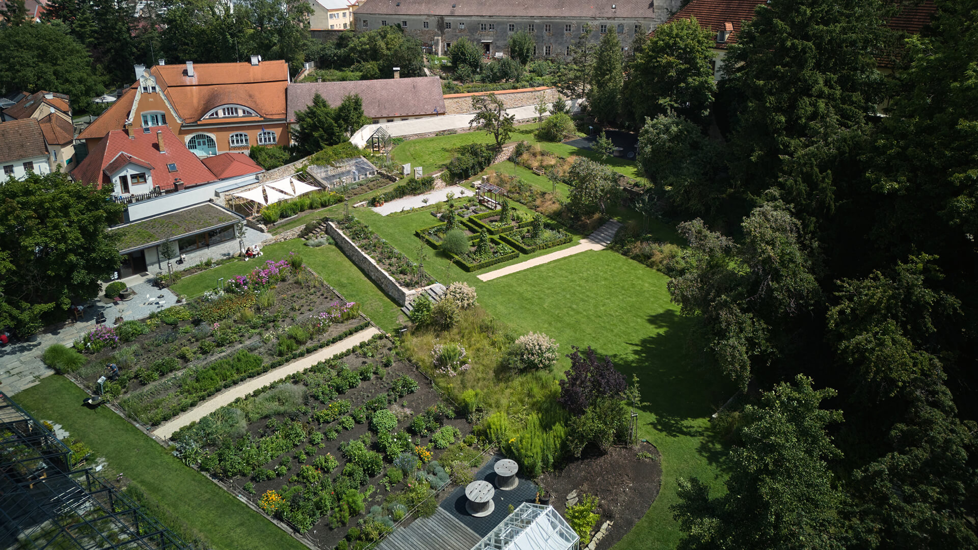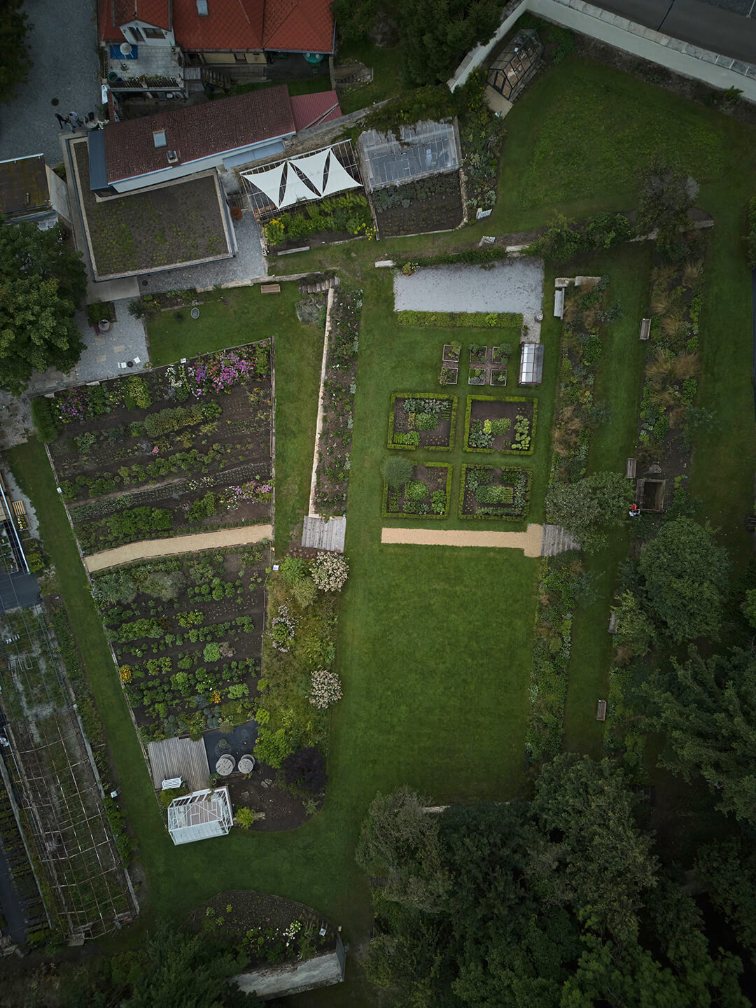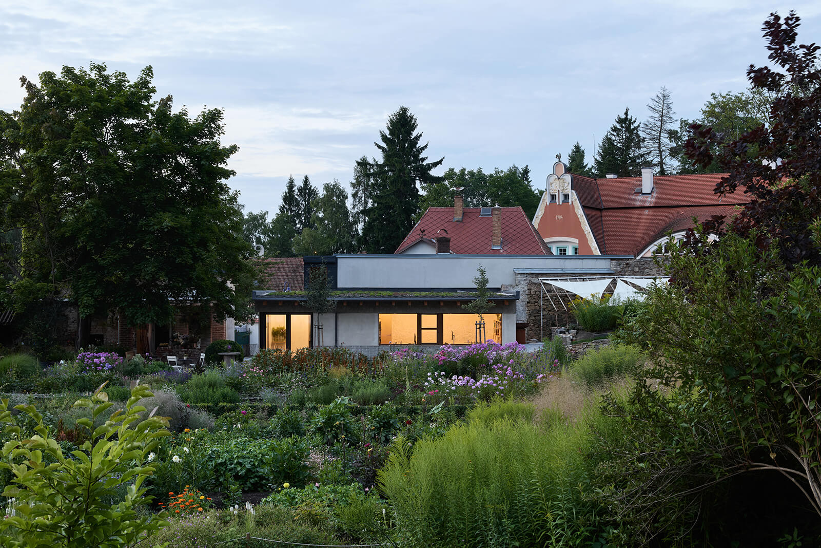 The garden, along with the architectural intervention, is developed as a dialogue between history and contemporary architecture. The collaboration between the Czech architects and landscape architects results in a joyful public space, where the greenhouses, sheds, community space and terraced garden collectively prioritise sustainability, recycling and rainwater management to enliven a natural ecosystem. The space hosts a variety of cultural activities, environmental events and flower and herb workshops, becoming a space for leisure as well as community engagement.