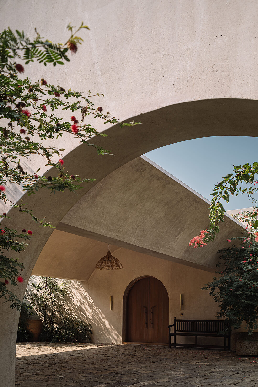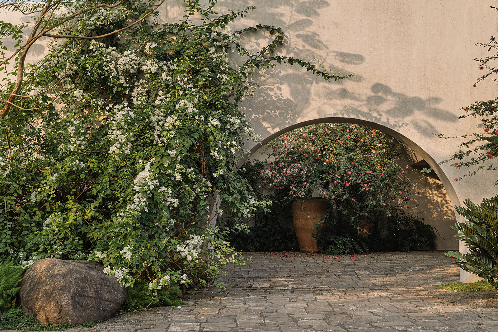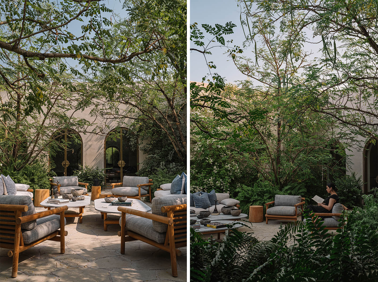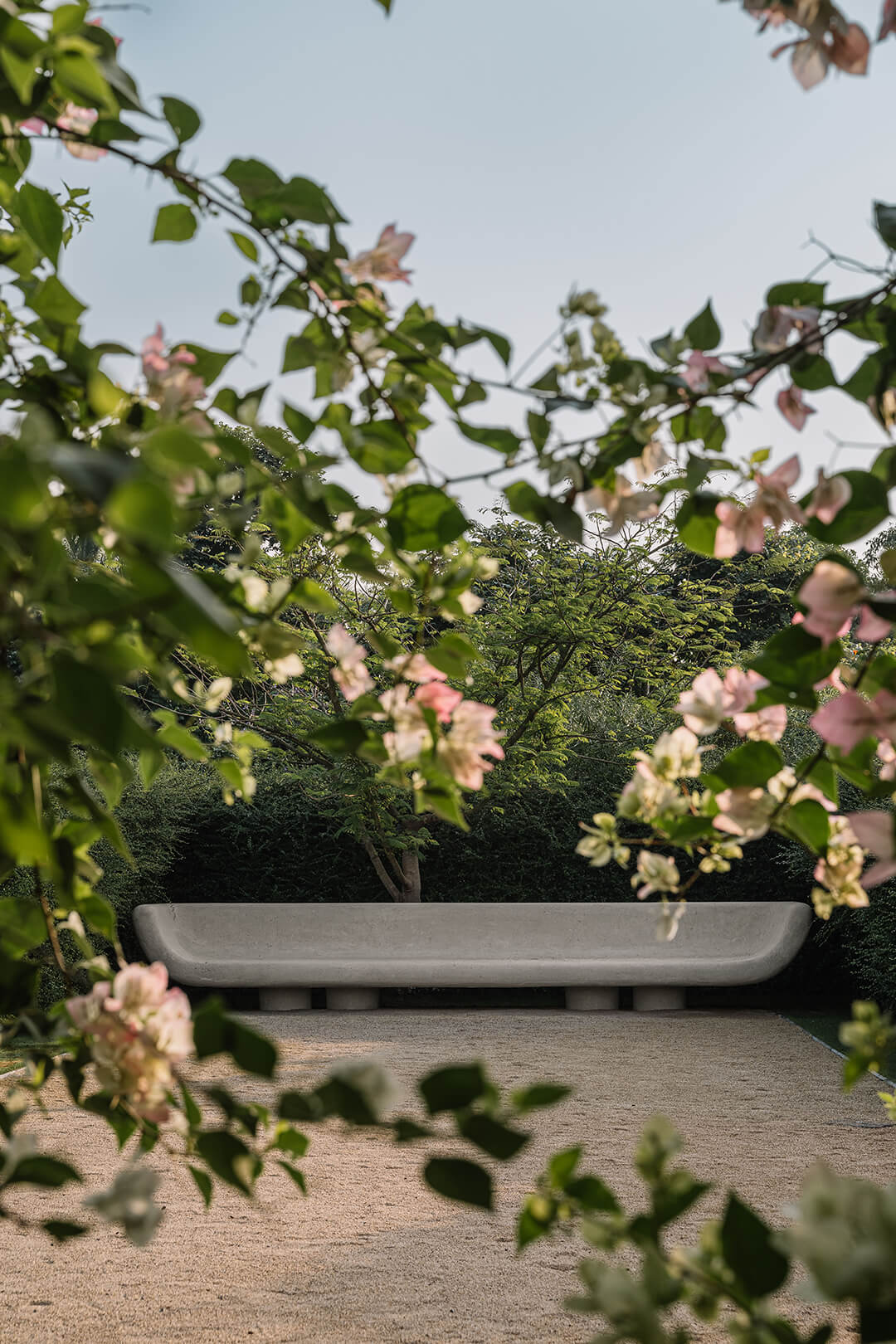 The flora weaves into the built form, engaging with the verandahs, courts and arched openings, the entire expanse breathing with an unassuming subtlety. “You don’t need to shout to be heard,” recalls Maniar, reminiscing over the words he heard from his tutor in design school and how they translated into his vision for the project. “Rather than filling five acres with spectacle, the design relies on atmosphere—light, rustling leaves, rippling water and seasonal change,” he notes.