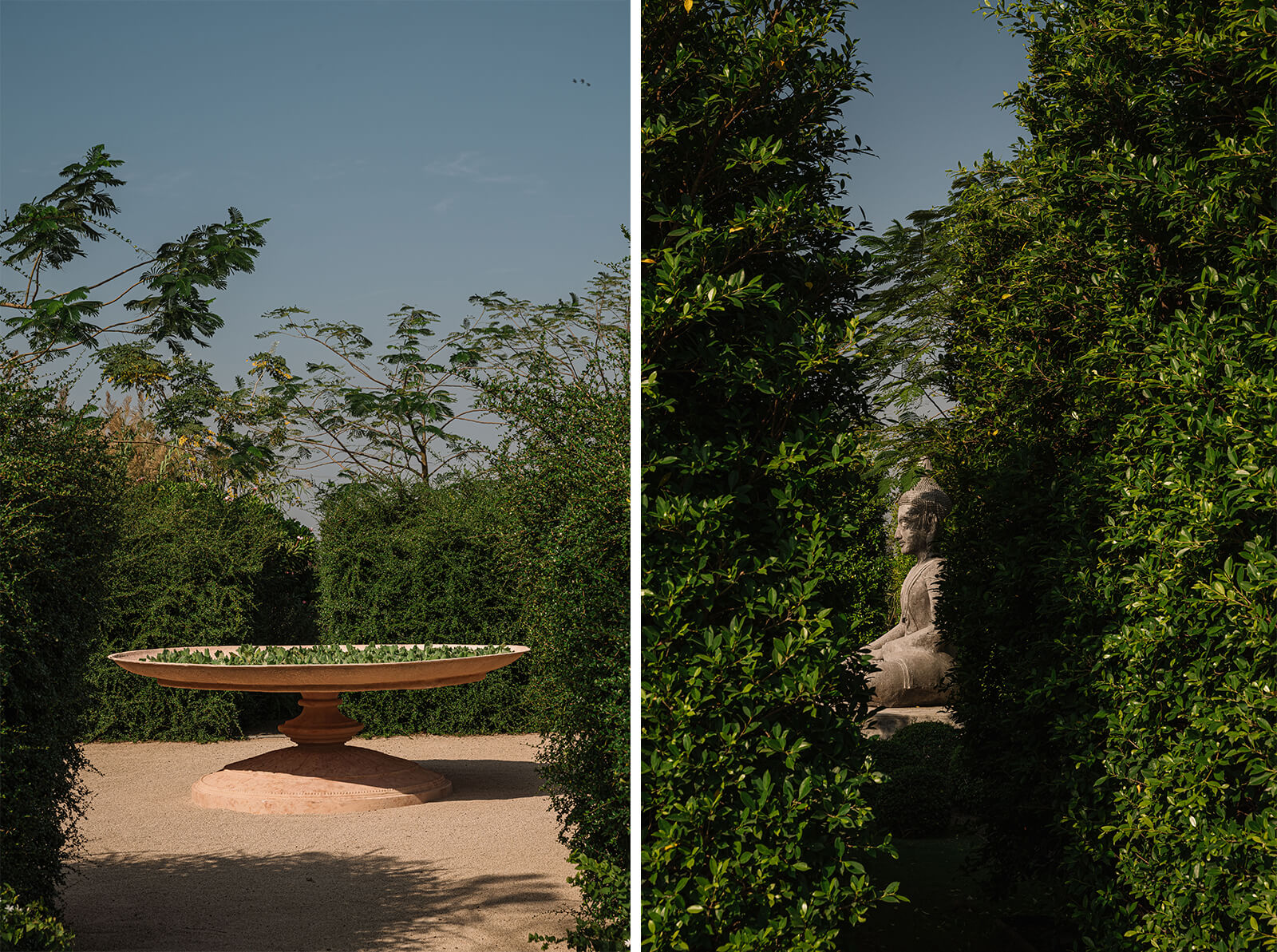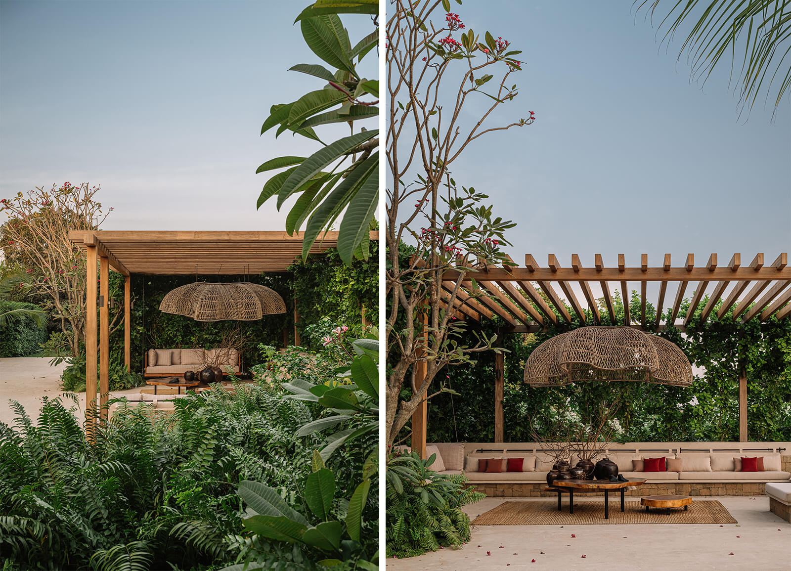 It is astounding to imagine the vast bareness that once occupied this land at the Awas village near Alibaug, now transformed into Dua Villa. “The clients were homeowners seeking a sanctuary rooted in ecology rather than ostentation. Their aspiration was to equate luxury with sustainability—to create a space that felt emotionally resonant, ecologically sensitive and quietly bold,” describes Kunaal Maniar, the landscape architect for the project. Through his eponymous practice, Maniar approaches landscape as a multidisciplinary canvas—drawing from fine arts, product design and even fashion—to empower nature to articulate its own design language rather than merely serve as a backdrop.