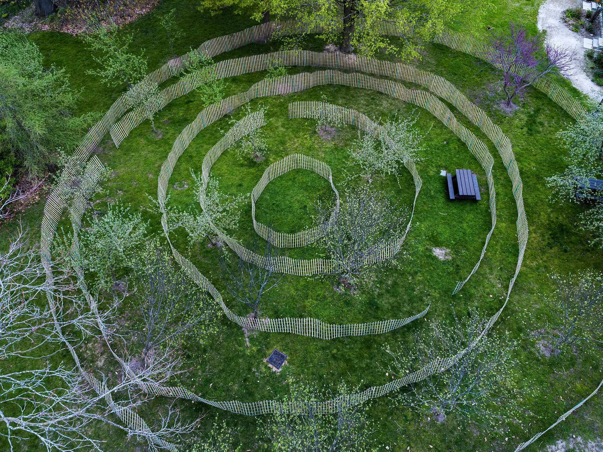 When the art is site-specific, the spatial settings and its history equally contribute to the meaning of the art. Taking cognisance of the same, their works act as a reminder of the past in the present to talk about future possibilities. In a similar vein, the work Long Division initiated a dialogue on the history of settler-colonisers on the land around Mississauga, the Bradley Museum of Ontario in Canada. The large outdoor installation with fences set in the circular shapes in the 8,000-square-metre gardens of the Bradley Museum gives a visual representation to the binary opposition of us and them, inclusion and exclusion, ours and theirs. From the opening, the participants can enter the rings before they hit the dead end - the ring without an entry point. The participatory nature of the installation attempts to acquaint the audience with the rules of navigations and negotiations, as if, moving across the boundaries, barriers and borders.