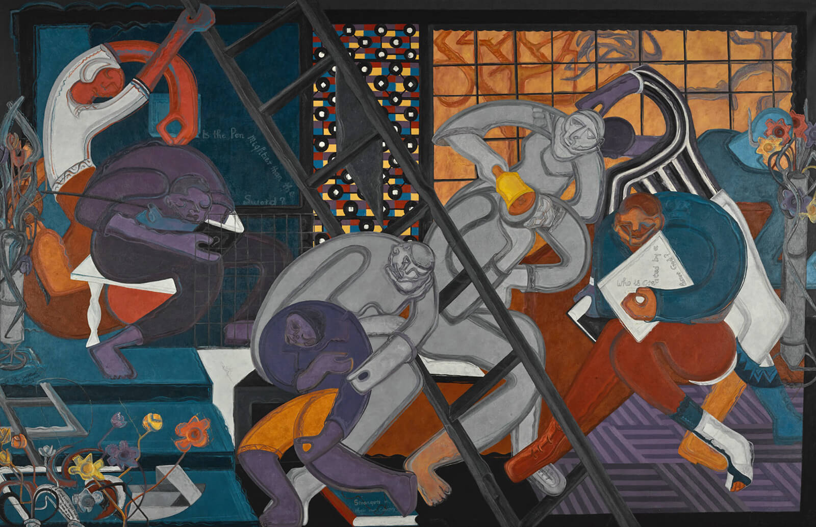 The Royal Academy of Art is an appropriate home for a monumental retrospective of paintings by the American artist, Kerry James Marshall, titled The Histories. Room after room of large-scale works reappropriate tropes of European art history for Black people and black skin. Among the many delights of the exhibition are Marshall’s barbershop scenes, rendered on epic scale, his distorted portraits of the American presidents George Washington and Thomas Jefferson and the frequent gold glitter embellishment on works, inspired by greeting cards.