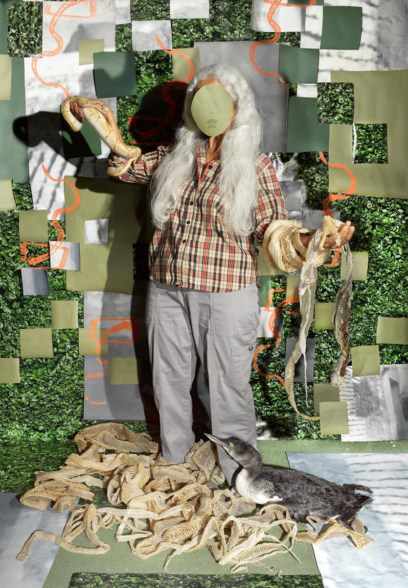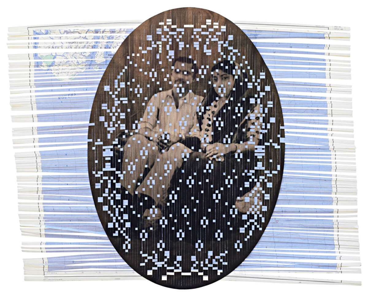 Collage becomes the material metaphor to think through history and its gaps at Autograph, a London photography gallery exploring race and identity since 1988. In a dense photomontage including a rescued, injured Cormorant by Iran-born artist and wildlife rehabilitator Sheida Soleimani, we find squares of the backdrop cut away. Woven paper strips in a work by Indian artist Arpita Akhanda interrupt a family photograph in the warp with a geographical map in the weft. A large-scale wallpaper by Lesotho-born artist and lawyer, Thato Toebare, tells the story of Ernesto Alfabeto Nhamuave, a Mozambican man burned to death in Johannesburg in 2008, during a wave of xenophobic violence, through archival images inserted into one another’s outlines.
