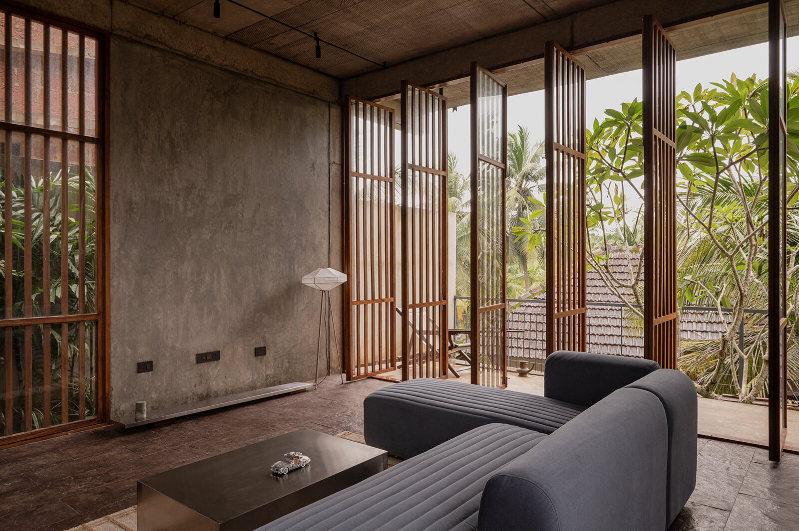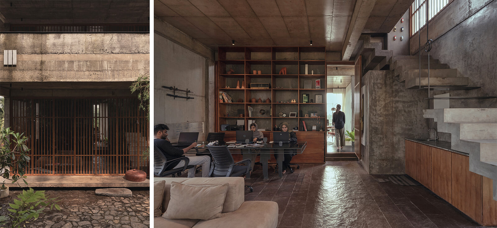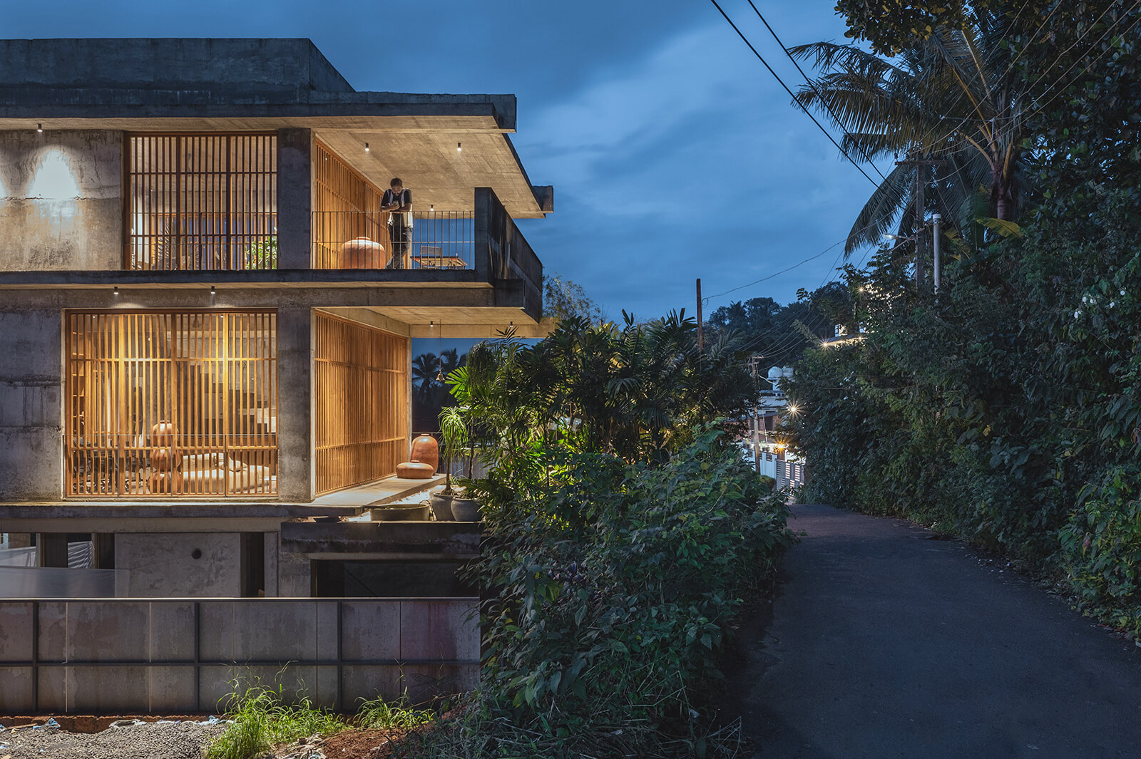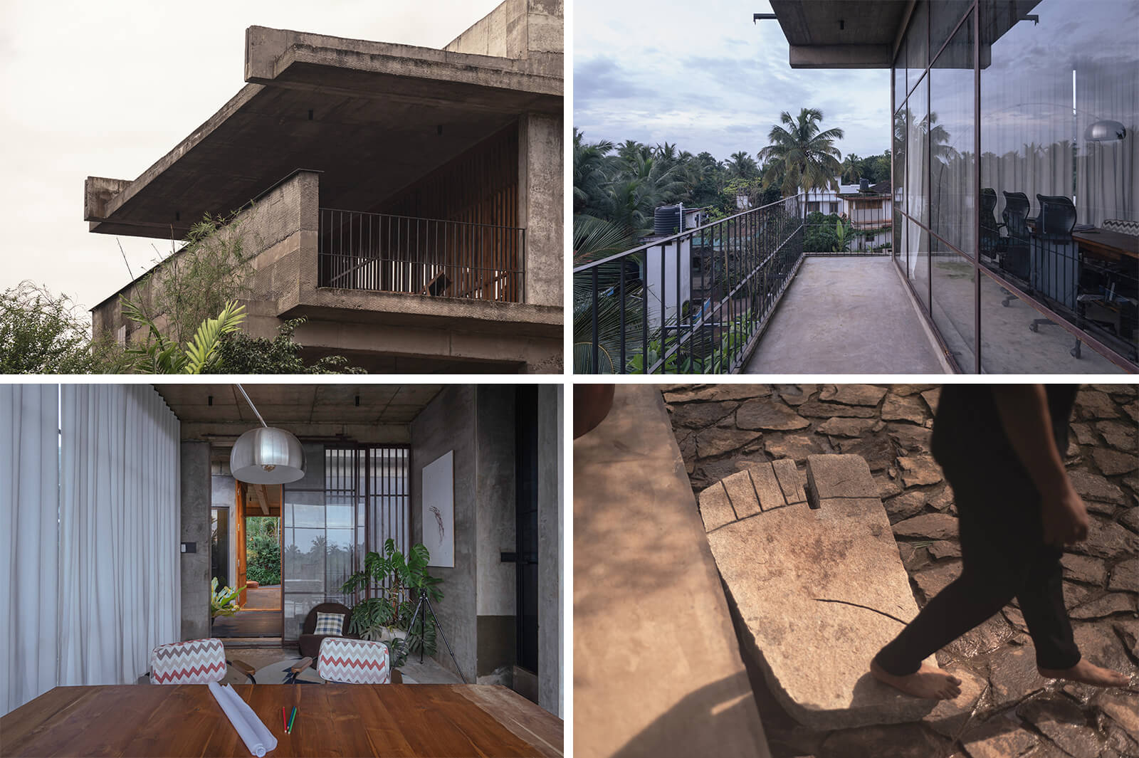 In the tropical, suburban region of Kannur in Kerala, India, lies a slow-paced office space shaped by a modernist spirit. Indian architecture practice 3dor Concepts’ workspace occupies the upper two floors of a mixed-use building that also integrates a private residence at its lowest level, tucked away to ensure privacy. Marked by exposed concrete surfaces and an unpolished aesthetic, the architecture is grounded in a contextual response to Kerala’s climate, incorporating verandas, shaded overhangs and locally sourced materials. According to the design team, the hybrid programme and elements that visually and spatially connect the levels from within reflect a balanced relationship between work and life.