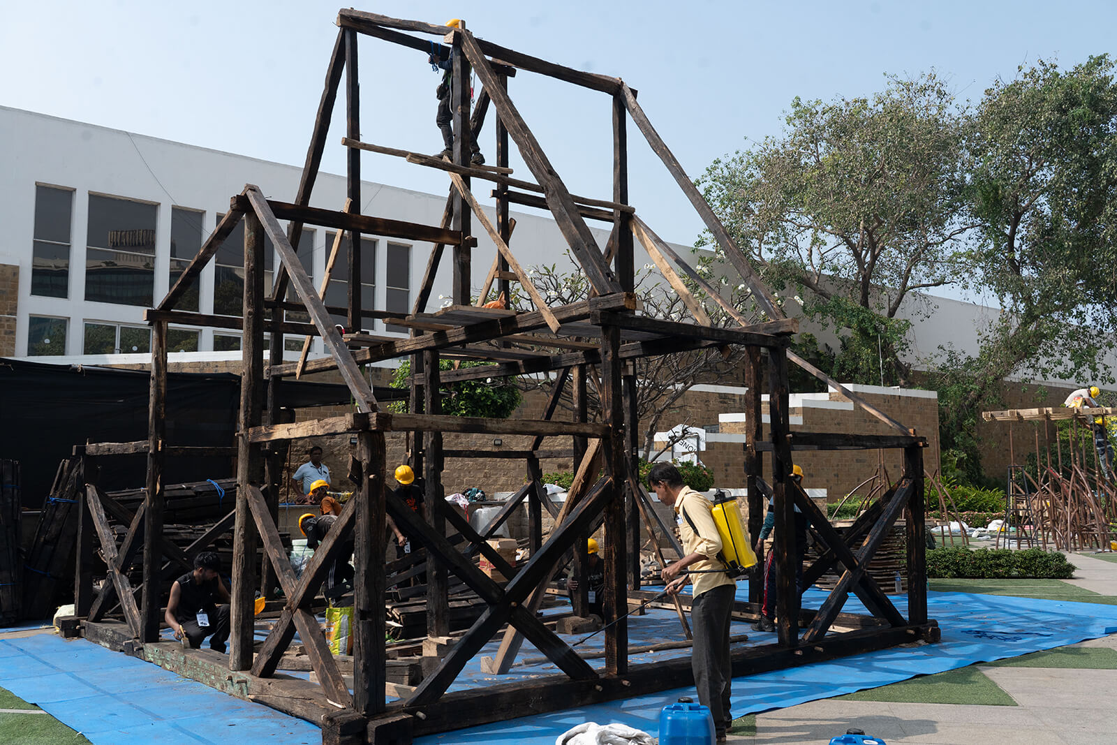 Sustainability is embedded as a system, not merely as rhetoric. Timber stores carbon, the absence of metal avoids corrosion and dry assembly allows the pavilion to be dismantled without scarring its materials. After the festival, the structure will continue its afterlife, first through extended public engagement in the city itself, and then relocated to the Godrej Campus, in Mumbai, India, where it will serve as a living classroom, cultural gathering space and a site of ongoing exchange. Temporality, here, does not mean complete disposability; it signals a certain continuity across contexts.