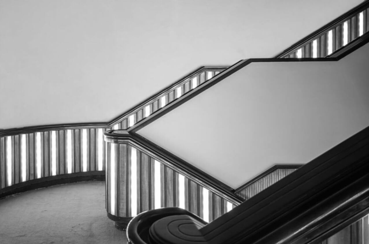 Indian designer Tulika Shrivastava, based in New Delhi, also works from a similar impulse to document and preserve. She photographs the exteriors of ordinary Indian houses, slices the images and weaves them with bright paper to recreate patterns seen in the metal windows and gate grilles. Shrivastava translates unnoticed elements of traditional craft in everyday life into contemporary art that recalls pixel art or bitmaps. She is inspired by the unexpected intersection of the analogue and technological in ‘pseudo-digital’ art forms like mosaic, needlepoint and, in this series, metalwork grilles. Mumbai-based photographer Kuber Shah captures the soul of the city’s Art Deco past by documenting the remnants of architecture and design from the period. His black and white images zoom into theatres and homes, defamiliarising them while centring on iconic elements of the modernist style.