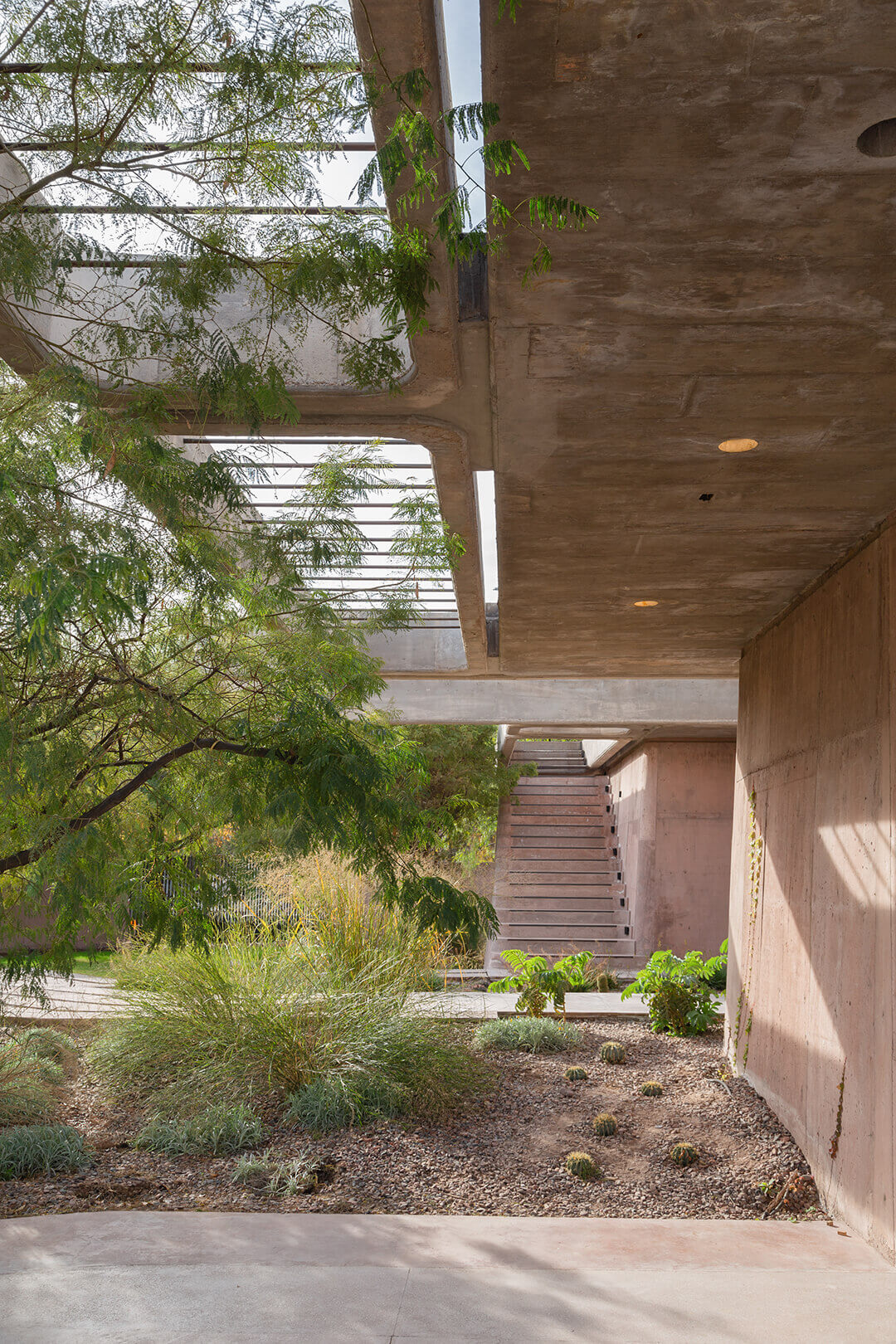 Conceived by Pentaspace Design Studio, this cuboidal volume of exposed concrete and glass pegs movement as integral to the learning experience.