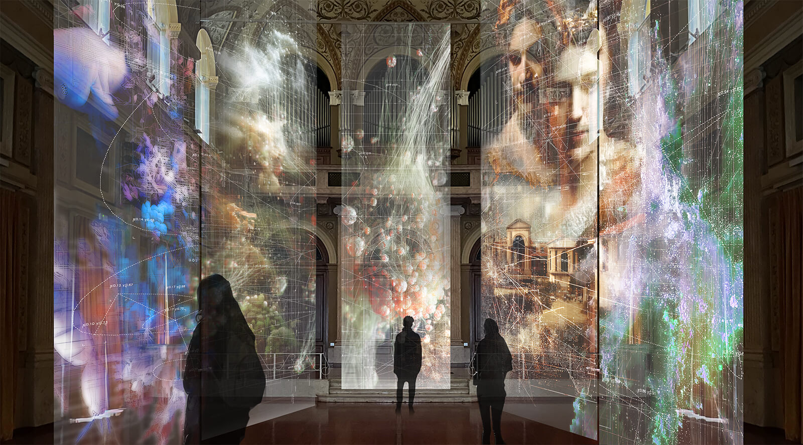 To the heart of the design district at the Fondazione Istituto dei Ciechi—a large neo-classical villa serving as an institute for the visually impaired since the 19th Century—multidisciplinary design studio Dotdotdot brings a large immersive installation: Anima Mundi, A Visionary Impulse. Designed for China-based automobile manufacturer Geely Auto, the installation explores the relationship between the digital and physical realm by responding to the occupancy patterns of the space through audio-visual feedback.