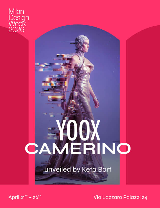 At the Galleria Romero Paprocki (Via Lazzaro Palazzi 24), the Vienna-based digital artist Keta Bart reinterprets the act of changing clothes as an exploration of personal identity and self-expression. Designed in collaboration with YOOX—an online store of fashion, design and art—her installation, IL CAMERINO, translates the intimate ritual of entering and inhabiting the camerino (Italian for dressing room), as a spatial narrative shaped by experience design and artificial intelligence. The concept unfolds across three layers: Surprise, where the identity starts morphing but is not yet composed; Belong, where the self anchors itself, seeking resonance in style; and Elevate, the stage of conscious expression.