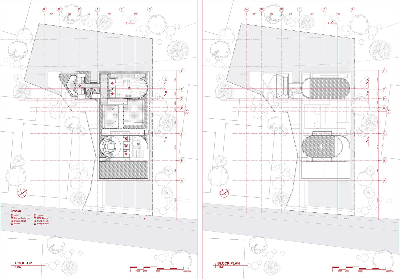 Total built area: 2,000 sq m