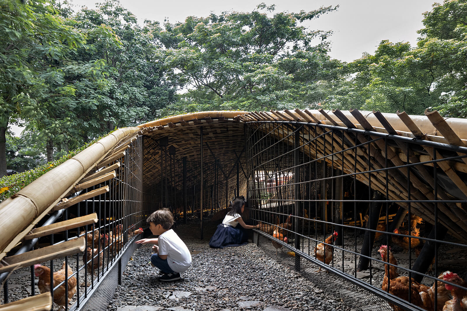 The Chicken Hero Pavilion also emphasises inclusivity and education. Its design creates a welcoming space for visitors, fostering interaction between people and chickens. This reciprocity is not merely symbolic; it serves to break down the stigma associated with home-based poultry keeping. By engaging visitors and providing tangible examples of sustainable practices, the bamboo pavilion aims to inspire communities to adopt similar initiatives in their households and neighbourhoods.