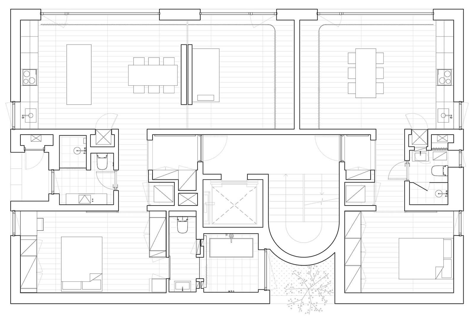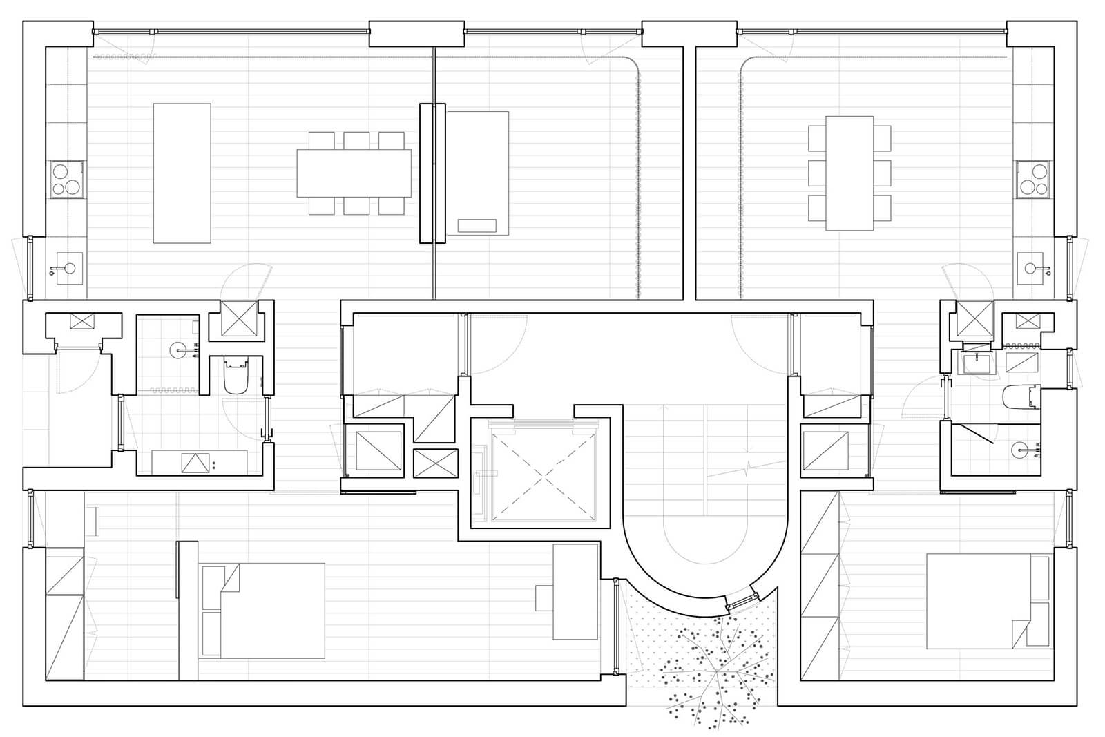 Order Matter: The grid is a quiet but powerful presence. It creates an underlying rhythm that holds the house together, so even as spaces change in size or character, they feel connected. It allows walls and furniture to be read as independent elements, as carefully placed objects rather than fixed boundaries. This gives the interiors a sense of lightness, almost as if things could be rearranged. For the inhabitants, this invisible order can bring a sense of calm. It reassures them that the house has a clear structure, that nothing is arbitrary.