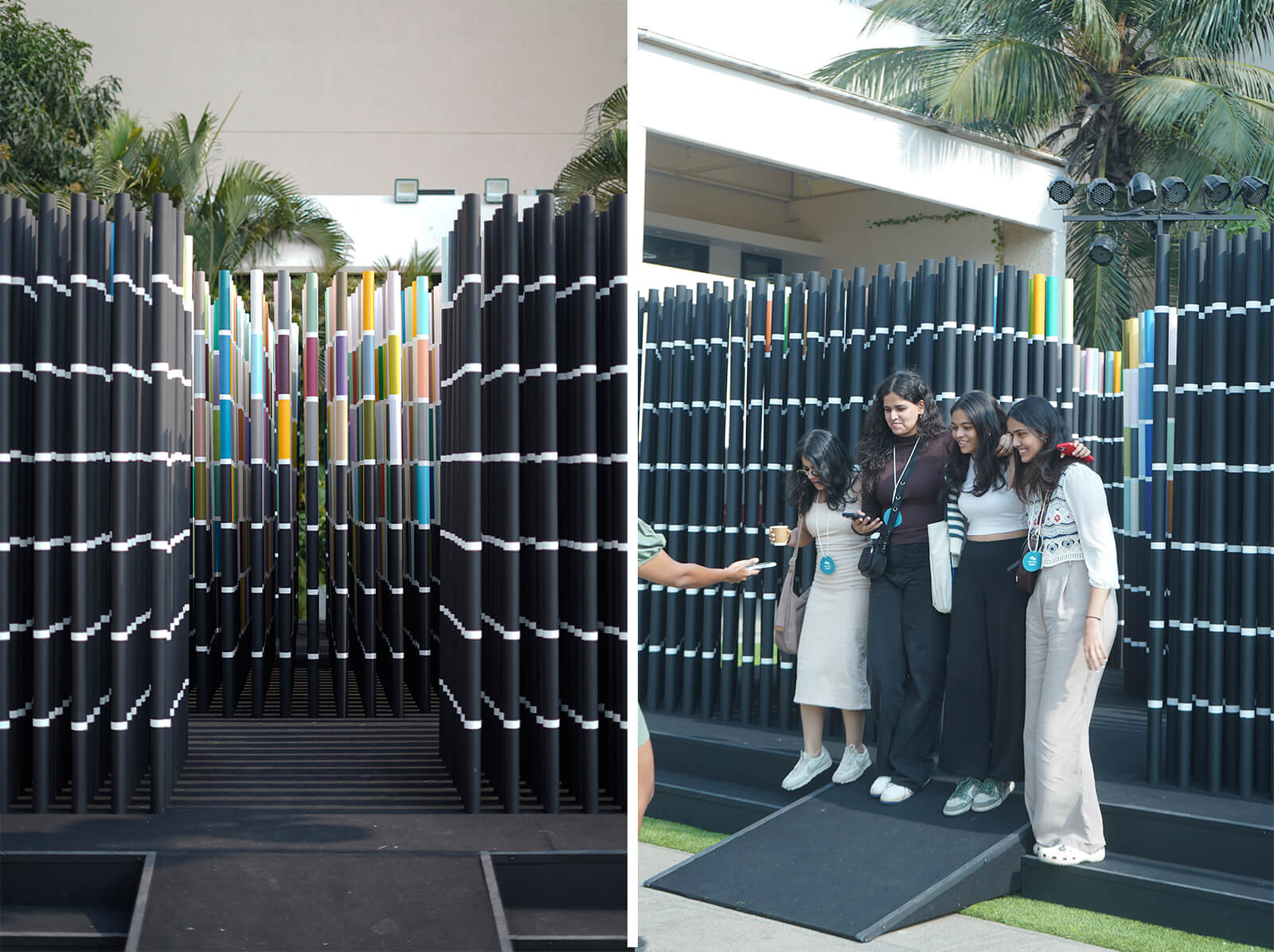 SIFT also builds on the trajectory of Suchi Reddy’s work at last year’s ADFF:STIR Mumbai, where her practice was represented through Chromacosm, a special project developed in collaboration with Asian Paints. Conceived as part of the launch of the company’s extensive architectural colour system of over 5,300 shades, the immersive installation translated years of colour research drawn from photography, oral histories, film and everyday Indian life into spatial experience. Entered through a dense forest of black reeds, the pavilion revealed a luminous interior where colour unfolded gradually through light, movement and perception.