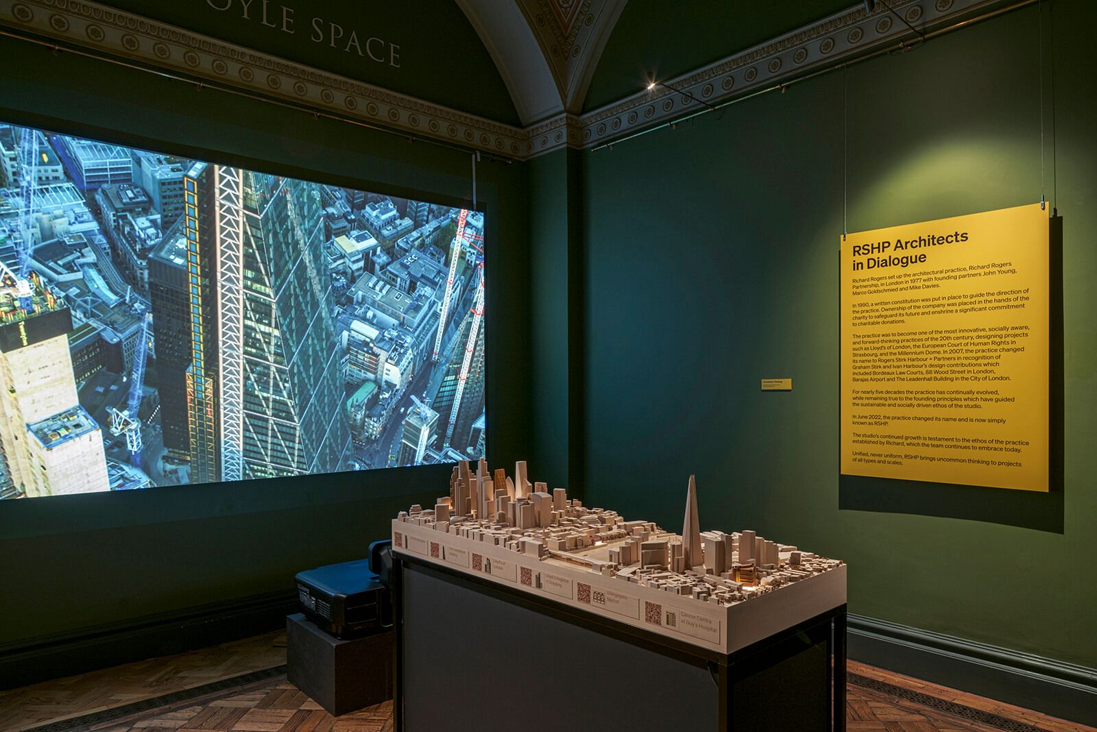 The scope of the exhibition naturally extended beyond Rogers himself. In the museum’s Foyle Space, a specially commissioned installation titled RSHP Architects in Dialogue presented the work of Rogers Stirk Harbour + Partners, known today as RSHP. Through drawings and models, it demonstrated how the ethos established by Rogers continues to shape projects worldwide in the firm’s body of work. As John McElgunn, a senior director at RSHP, has remarked in the official statement, “Richard and his partners were radical, visionary and above all, humanists. Their work extended far beyond the act of designing individual buildings as they envisioned the city as a whole.”