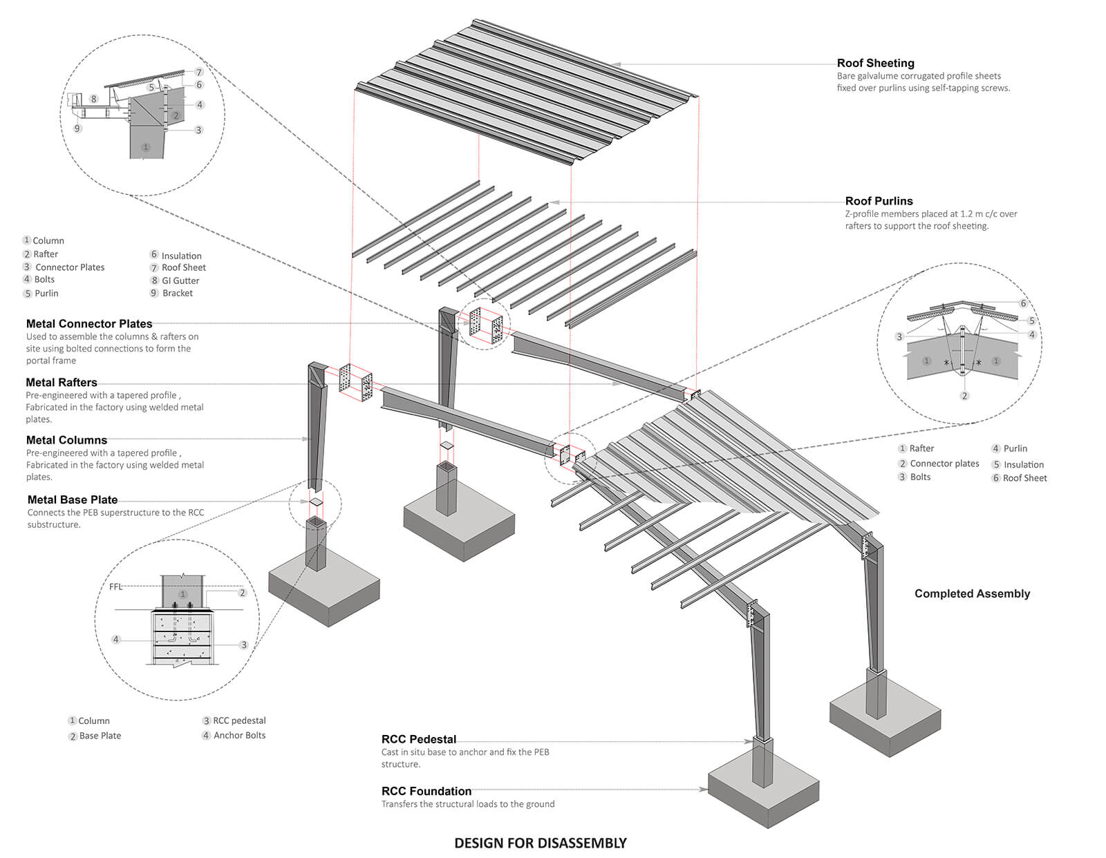 “The entire structure is designed for disassembly,” the Indian architects note in the project’s press statement. Every element of the black steel frame is bolted, not welded; each joint visible, each connection deliberate. The result is an architecture of precision and flexibility: when spatial needs shift, the frame can be dismantled and reused elsewhere.