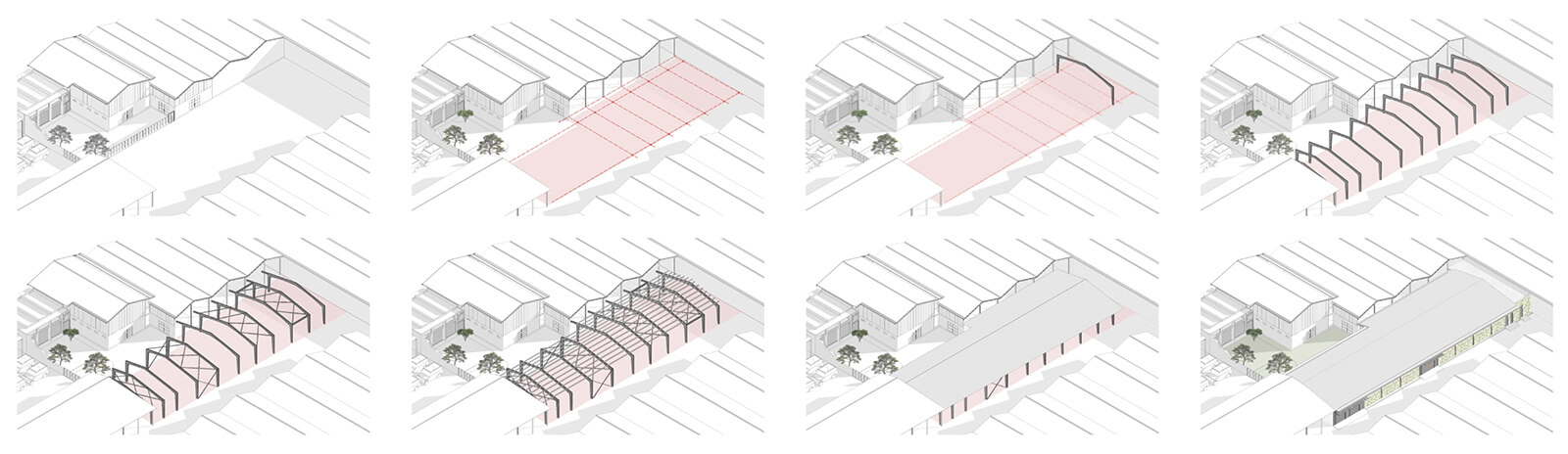 Every line of the project is drawn with an awareness of time—its passing, its potential, its circularity. Bolted frames anticipate future dismantling. The skylit street marks the motion of daylight. The material palette of the original studio, comprising black steel, grey cement plaster, and concrete, is intentionally carried forward into the extension. Together, these materials hold the memory of touch—from industrial steel to hand-trowelled plaster.