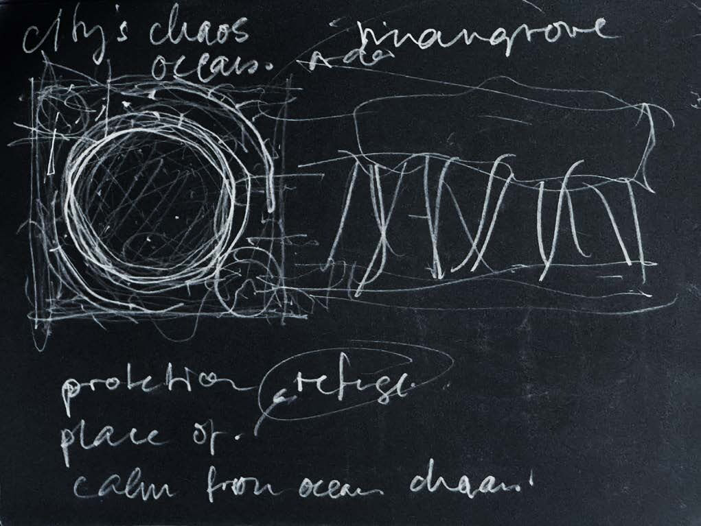 With a light touch on the ground, the ephemeral architecture of Mangrove Pavilion and its semiotic approach to sustainable design negotiates contradictions of city and shoreline, structure and spirit, performance and place. Like the porous habitats it emulates, it is to unfold and breathe along with its context, drawing the visitor into its knotty network of relations.