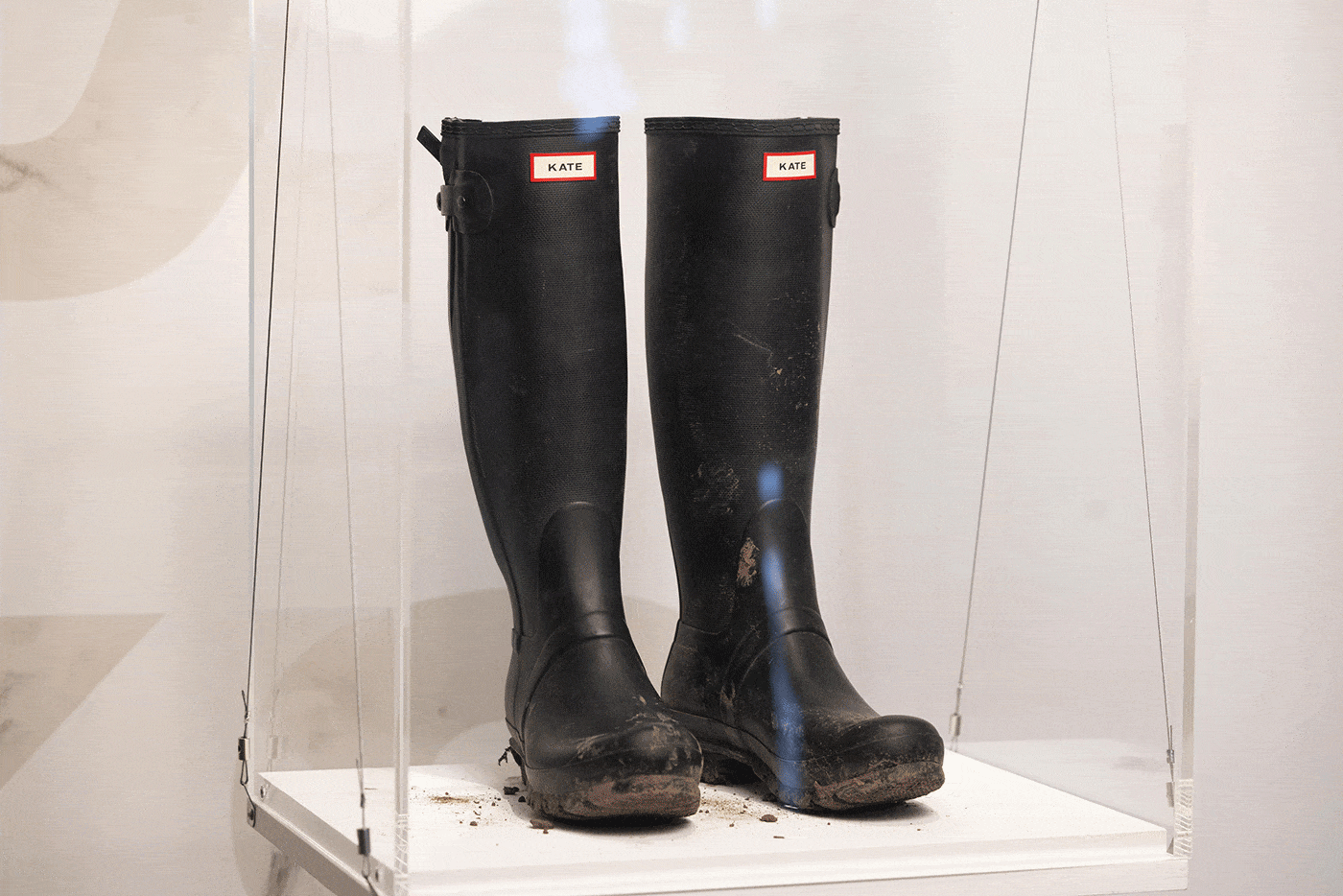 Perhaps the most cited academic work on the material semiotics of dirt has been Mary Douglas’ Purity and Danger. Her definition of it as an otherwise unspecified substance simply in the wrong place emphasises its perception as something that disturbs the pristine state of a thing. Conversely, the sweat stains that bloom around our armpits, the marks of makeup or blood, flakes of skin or hair clinging to a jersey act as a trace, a record of ourselves. If to sully something, then, is for the most part surface treatment (sometimes costing the wearer upwards of $1500), it is also representative of the trace of life. It’s this dialectical condition that the garments at the Barbican also embody, with a lot of the displays in glass vitrines, preserved from further deterioration.