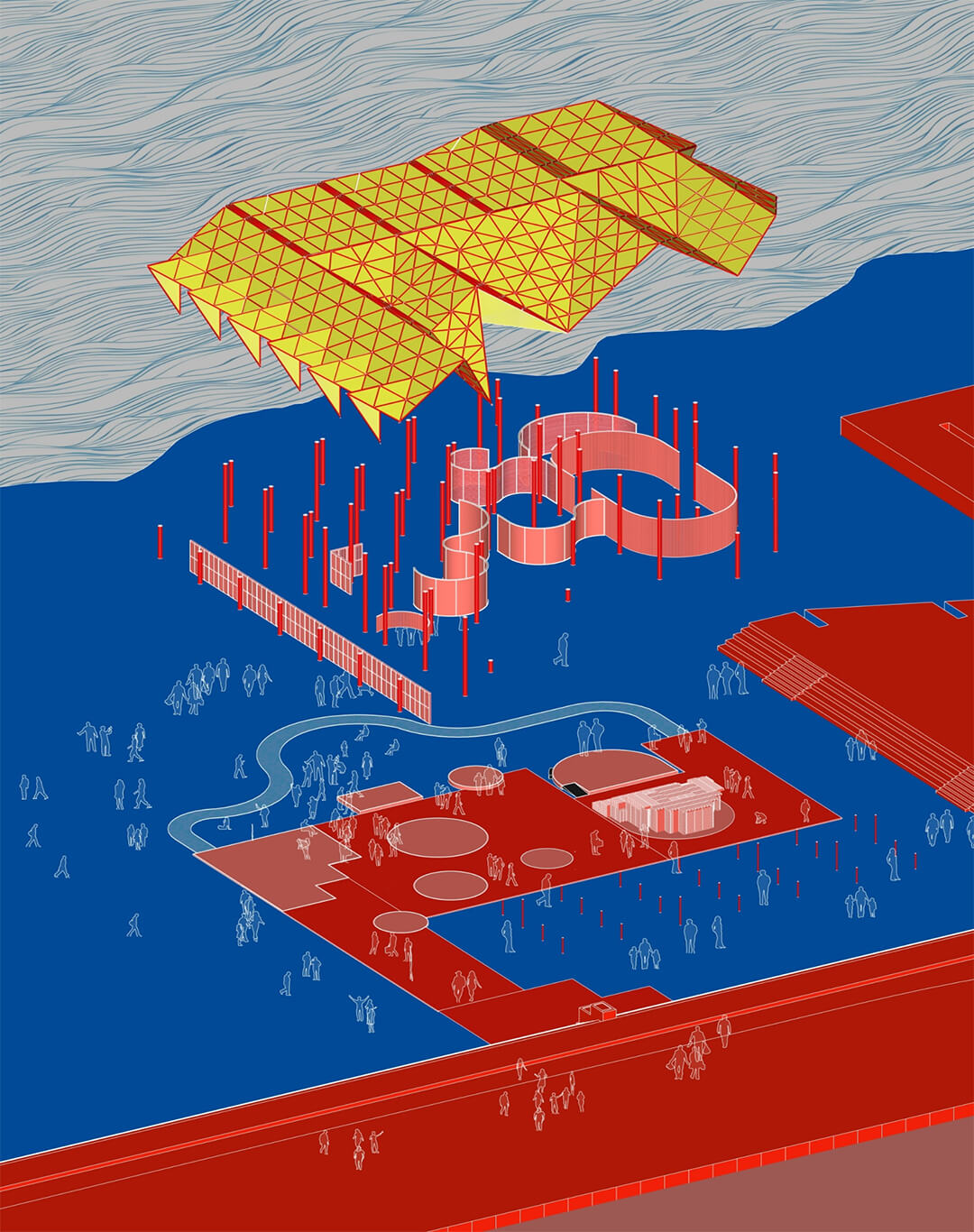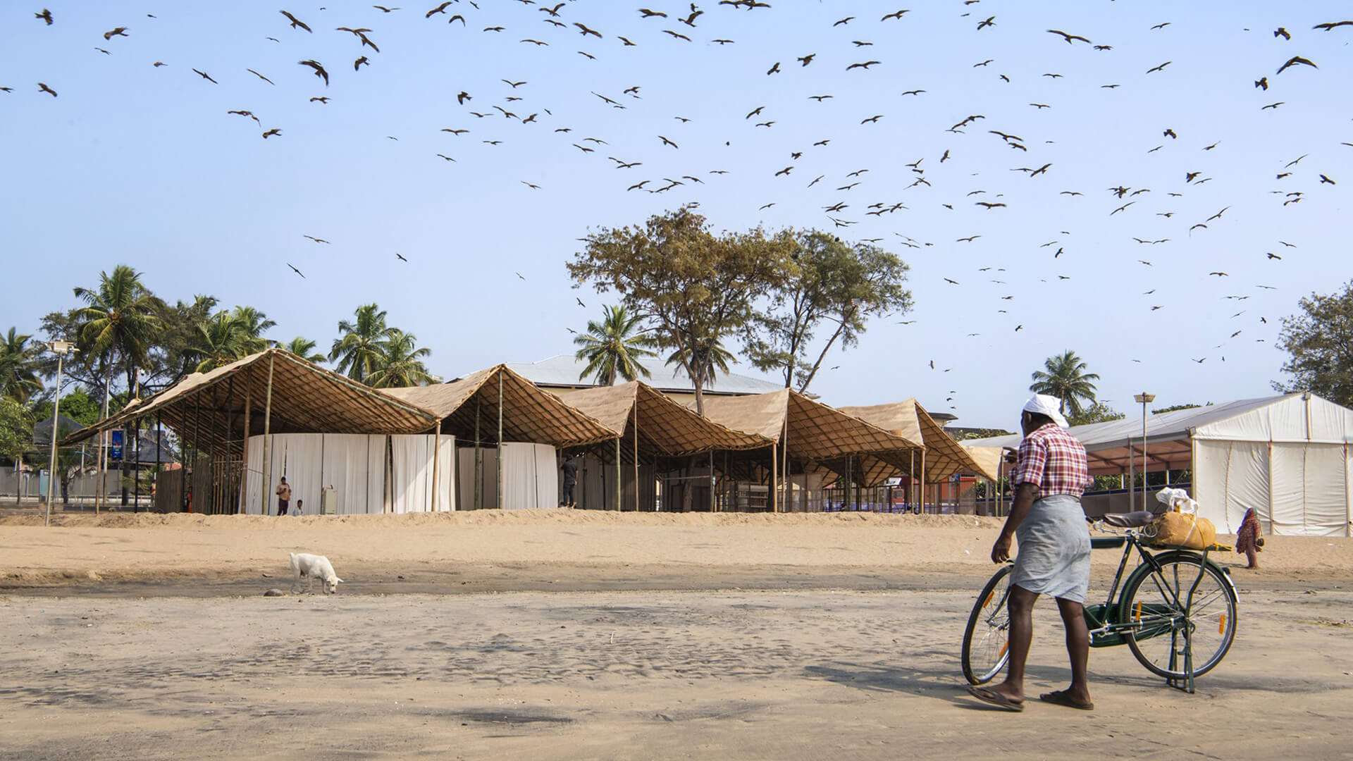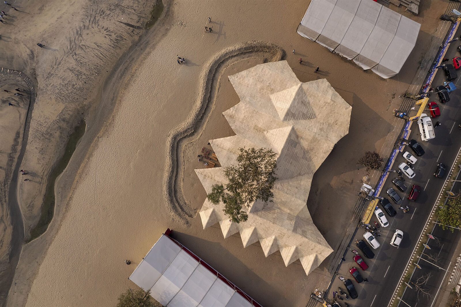 The structural system, in addition to keeping the assembly lightweight and quick to assemble, rendered the pavilion as a porous membrane embracing the pleasant coastal breeze and serene ocean views. As a physical manifestation of its cross-cultural history, the pavilion design referenced its Indo-German legacy through its material palette, derived from the weaving and tile industries of the Commonwealth Trust established by the Basel Missionaries, while its construction techniques served as a showcase of the local crafts and labour traditions of Kerala.