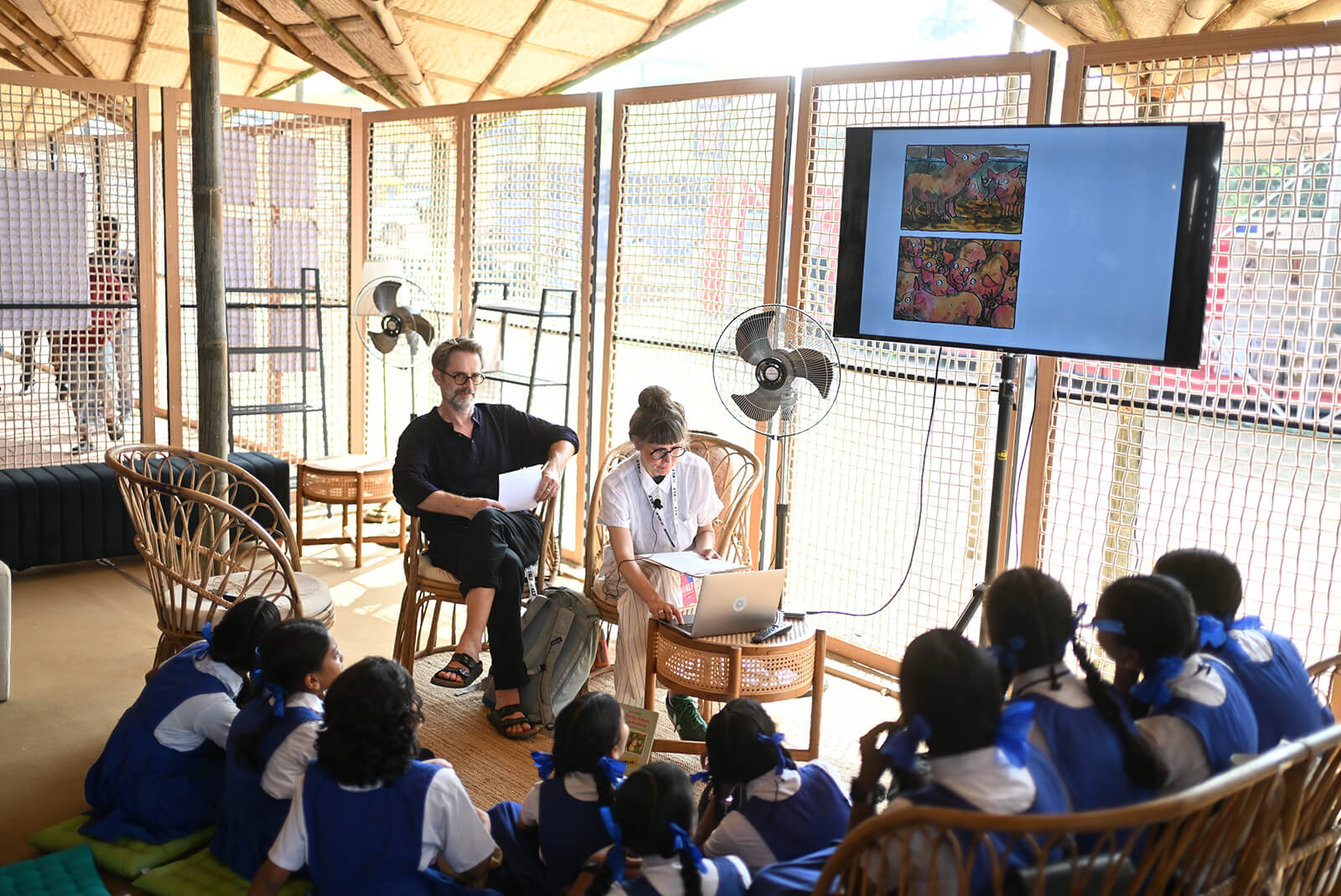 The German story reserves its distinct place in the historical progression of Kerala, especially owing to their significant organisation and amplification of its local culture, languages and arts within the braces of their formal, systematic and structured systems. Along the coast of the Arabian Sea, embracing the cyclically lapping waves, the German Pavilion stood for KLF 2026 as an architecture reflective of this unique, historical cultural entanglement. The inversion of its historical hierarchy—housing the foreign culture in a locally crafted, but proud, structure—is an interesting provocation that lingers and sets the stage for the festival next year.