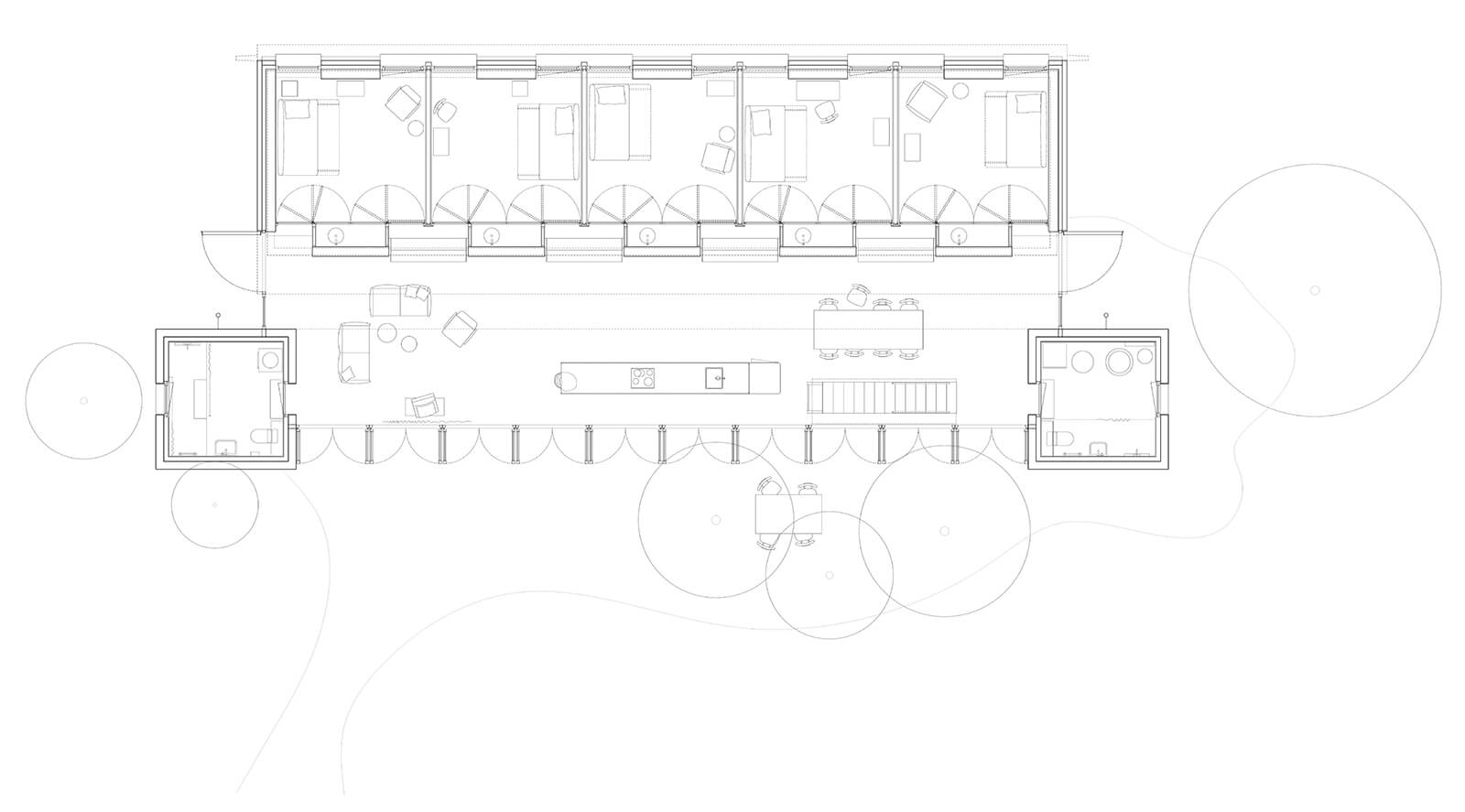 For Smajlović, more than the structure itself, crafting an appropriate social programme for these women was vital. Through architecture, she hoped to harbour a community that mutually supports each other—a hub for women to collaboratively learn new skills while also earning a livelihood. Addressing this, on the piece of land that Smajlović owns (on which the building currently stands), the project team laid agricultural plots for future residents to be able to grow and sell produce and manufacture artisanal jams and preserves. And while seemingly a secondary consideration, the manifestation of the House for Five Women presents a unique typology that is forbearing in its expansiveness, and quite unlike anything in its context. Lukas Burkhart, one of the members of the architecture and research association, shares with STIR, "It’s not that we tried to build a 'Bosnian' house—we think the outcome is one of an unforeseeable and complex process that was 'allowed or encouraged' rather than top-down planned." The goal, as Burkhart notes, was always to be "influenced by [the region’s] territory and people" but not to imitate. The overall result is a structure that prioritises adaptability over fixity, abandoning any notions of control exercised by design or even a state of ‘completion’ for the house.