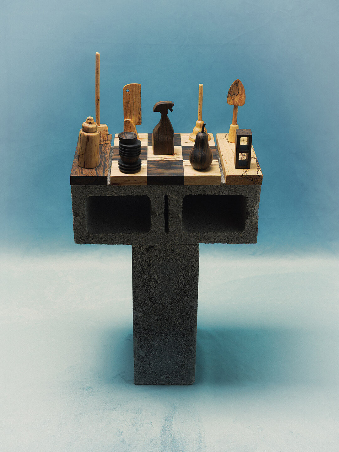 In Lo que nos toca jugar, carved from native woods by Oscar Cho and Belford Cristobal of ITZA Wood in Petén, everyday objects become tokens in a board game. Cleaning tools, bottles and fruit are transformed into pieces of play, exposing how survival often feels like chance. It is satire and sorrow intertwined, a reminder that work and migration are rarely matters of choice.