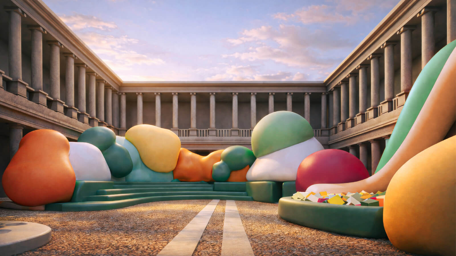 Designer and artist Sara Ricciardi takes on an unlikely brief—‘the neuroscience of happiness’—and turns it into something involuntary and emotional. Serotonin: The Chemistry of Happiness, commissioned by American Express and installed in the Loggia of the Pinacoteca di Brera, fills the space with large, cartoonish inflatable forms that slowly expand and contract, breathing and pulsing as though alive. The atmospheric work translates a biochemical concept into a bodily experience in a way that the rhythm of the installation mirrors the rhythms of the body.