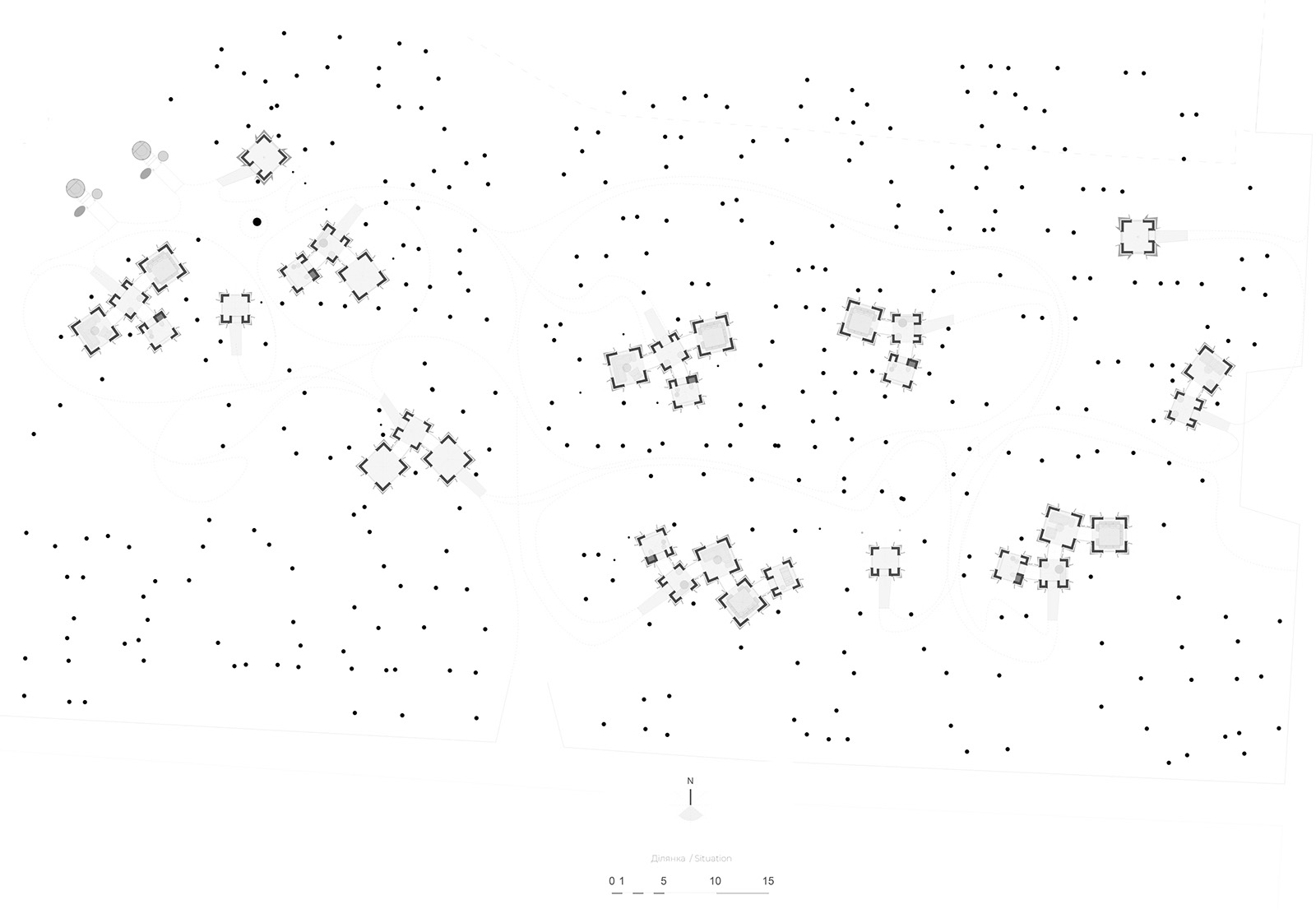 Upon viewing the structures from the outside, the contrasting materiality of weathering steel and glass in the modular architecture, along with its asymmetrical geometry and controlled disorganisation of the site, evoke feelings of ambiguity, curiosity and wonder. Perhaps from within, the contemporary architecture would reveal a sense of introspection and future nostalgia. Reframing the present war tensions and childhood memories through a sensitive lens, the Namety Cabins project embodies the architects’ take on a hybrid architectural identity that combines Ukraine’s shared memory of war with a contemporary vision for its future.