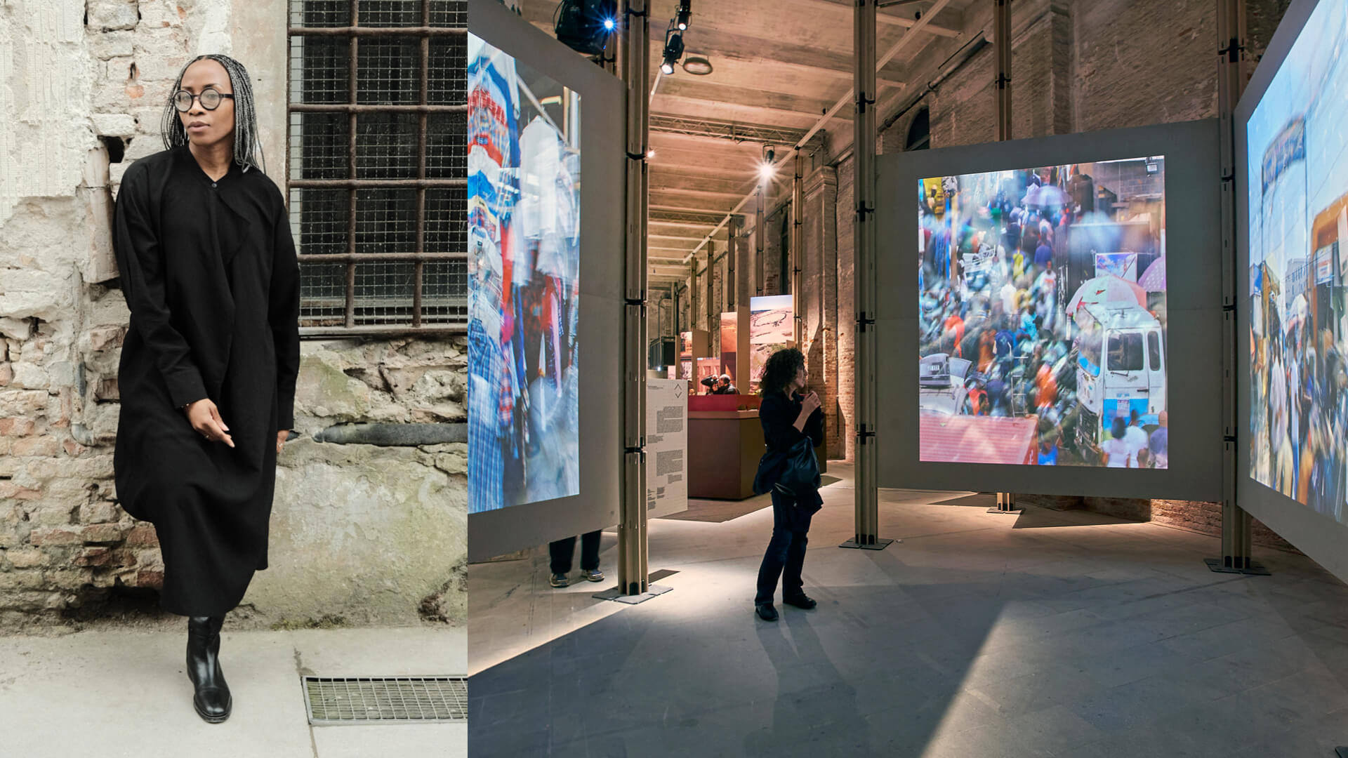 Focusing on the intensive methods of adaptation and resourcefulness prevalent in three 'self-organised' markets—Ladipo Market, Computer Village and Katangua—the display combines film, photography and on-ground data to depict how these spaces and the informal systems comprising them operate. Oshinowo Studio’s installation at the Arsenale in the Curator’s Showcase is conceived as a contained space, with three 3x3-metre walls that create a sense of enclosure. Within the installation, video documentations of the three markets play on loop, while on the outer walls, data and maps depicting the different zones and forces that shape the marketplace and its functions are enumerated. These diagrams were crafted in Katangua market from recycled denim, adhering to Ratti's circularity manifesto for the Biennale.