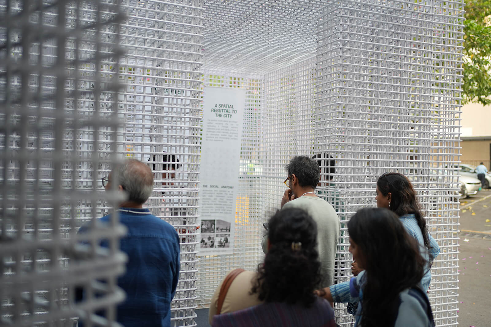 Conceptually, Unscripted is an extension of the festival's curatorial theme, which draws from Bernard Tschumi’s Manhattan Transcripts. Developed as a series of speculative drawings, Tschumi’s work challenged the idea of architecture as purely formal or functional construct, proposing instead that meaning emerges through the interaction of space, movement and event. The pavilion similarly resists a singular reading. From one angle, it appears ordered and legible; from another, it feels fragmented and unsettled. This oscillation mirrors the simultaneity of urban experience, where coherence and chaos coexist.