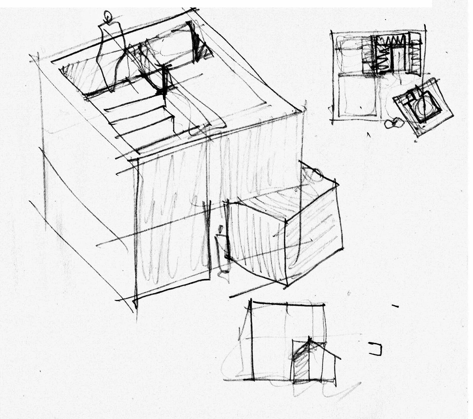 Formally, the pavilion originates as a simple cube divided into multiple volumes. One volume is deliberately disengaged, introducing a controlled fracture that destabilises uniformity and opens space for negotiation. While externally the structure presents clarity and restraint, internally it unfolds as an experiential terrain shaped by diagonals, voids and shifting alignments. There is no front or back. The pavilion is porous on all sides and accessible from any direction, aligning with the Jaquar Pavilion Park’s ambition to foreground openness and public engagement.