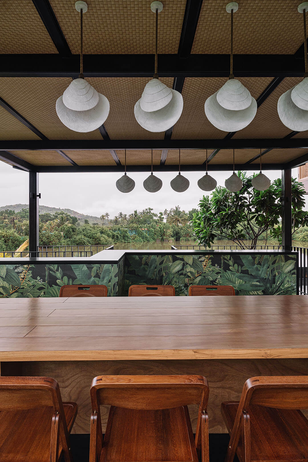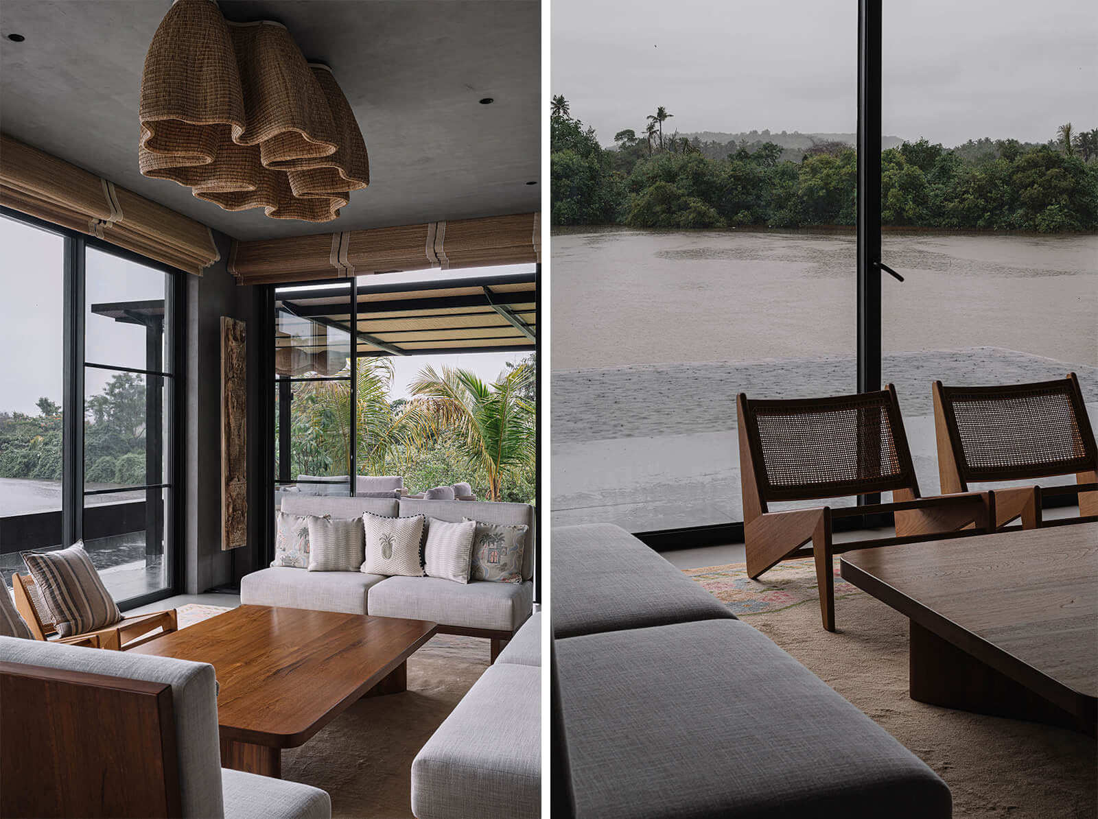The Salt Pan House, as the name suggests, is located at the edge of a salt pan in the tropical suburbs of Goa, India. Designed by We Design Studio, a Mumbai-based architecture practice, the residential architecture is nestled between the Chapora River and a mangrove belt. Instead of asserting itself over the fragile landscape, the residence is conceived as a quiet observer— adjusted to climate, rooted in material honesty and attuned to the rhythms of its surrounding. Channelling the spirit of the three salt pans it overlooks, which constitute eight out of ten acres of the site, the architecture unfolds in three layers of materiality within a controlled footprint of 6,000 sq ft. “From the outset, the vision shared by the architect and the client was one of restraint and reverence: a spatial response guided not by ornament, but by climate, context and material truth,” the studio tells STIR.