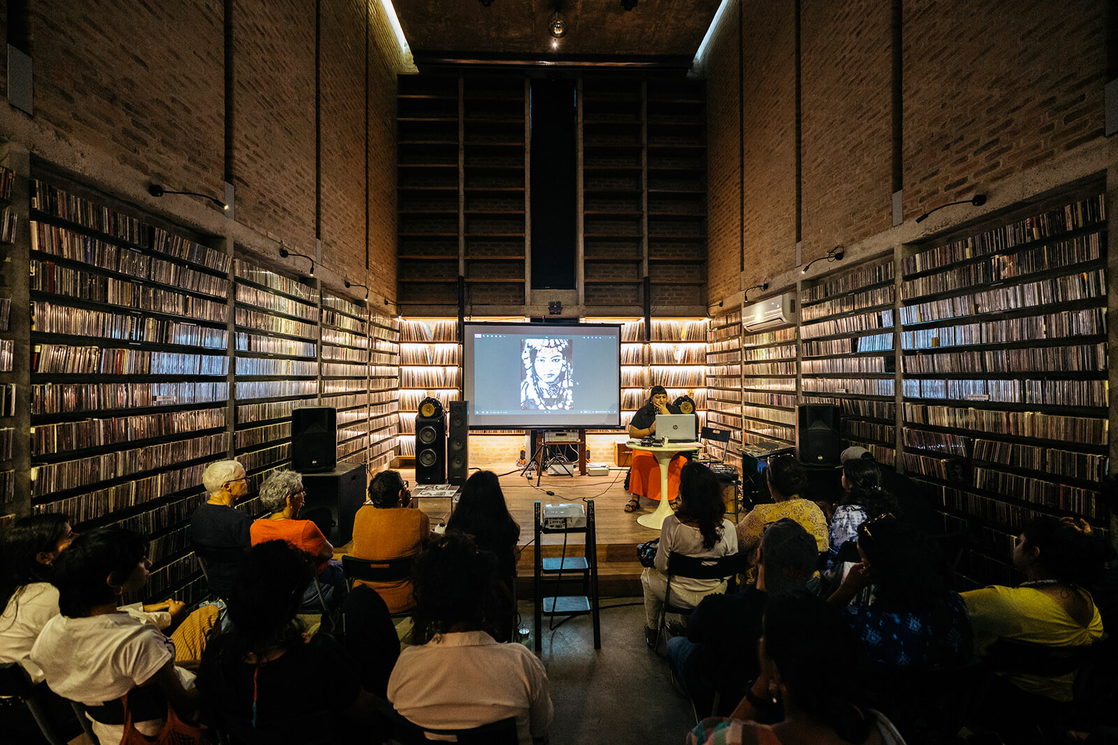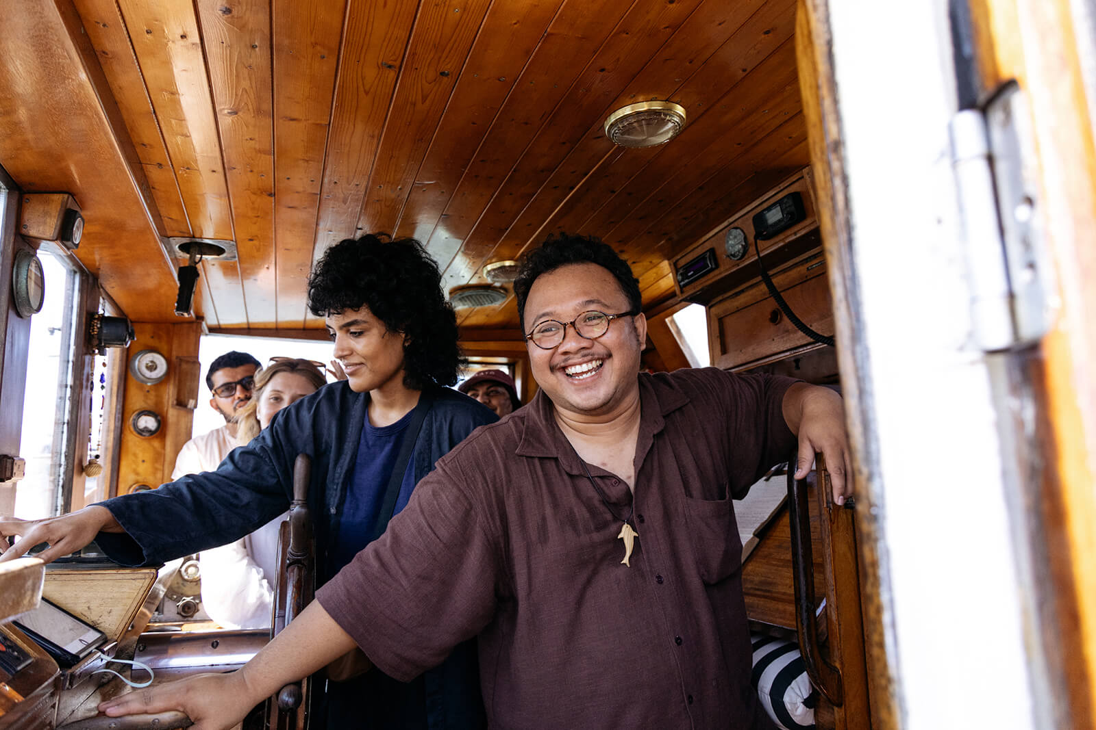 The second day took participants across the city, first to Arka Kinari, a sailing vessel that doubles up as a cultural project, where the ship’s current residents took visitors through functional and intimate spaces, sometimes venturing deep into the bowels of the ship. Being at sea, in close proximity to the same people for weeks or months, necessitates easy interpersonal relationships with disagreements being eased out in communal spaces. The ship’s log is both a technical record of its journeys and an emotional barometer, with entries about the generator dying, “fireflies flying around, flashing green”, and other whimsical notes, like the whaling reference in “we feel fast like a Nantucket sleigh ride”, perhaps hinting at a wild ride on turbulent seas. Meanwhile, at Soul Studio, Atiyyah Khan's workshop Rotations of Bismillah traced how Sufi and traditional musical forms travelled across the African world and through diasporic Indian Ocean networks.