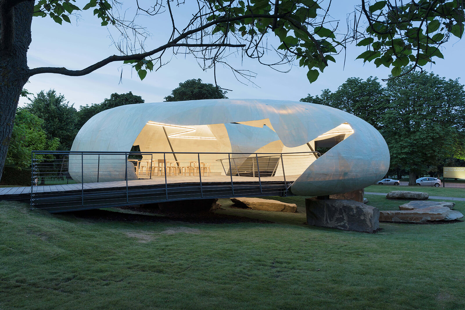 Radić Clarke also places a particular emphasis on materiality, proposing a radical originality in that approach. Materials such as stone, concrete, timber and glass are assembled together after a thorough analysis of their weight and texture along with their impact on the quality of light, sound and the spaces they would enclose. The design for the 2014 Serpentine Pavilion in London, for instance, uses a translucent fibreglass shell, resting on top of locally sourced, load-bearing stones. Through filtered light and only a partial enclosure, the visitors experience the feeling of a shelter without being visually or physically separated from the park. Teatro Regional del Biobío (2018) in Concepción, on the other hand, uses a similar semi-translucent envelope to support acoustic performance through restraint. The construction itself becomes a part of the spatial storytelling, since the volumes erected carry as much meaning as the spaces they form and the functions they house.