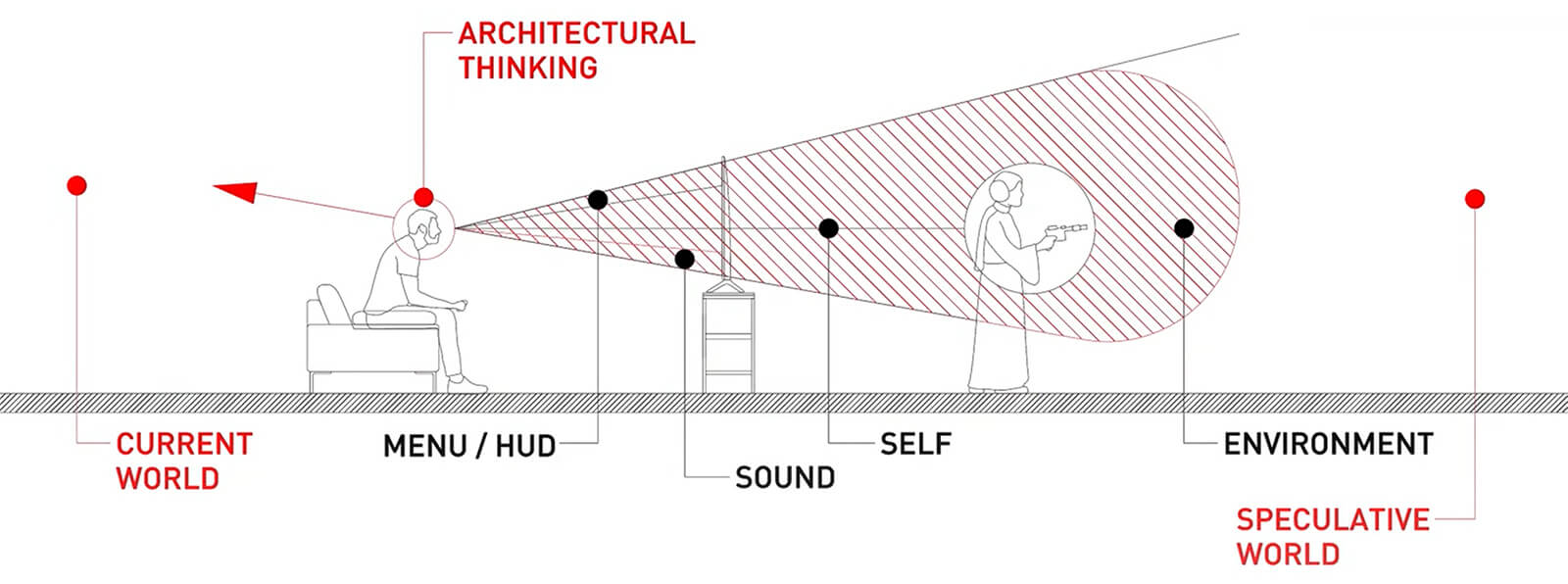Building upon Wulfman’s reframed architectural thinking, architectural designer and author Viola Ago further underlines the role of a creative author’s self—cultural, biological, anthropological and sensorial—in defining these pedagogical frameworks in the chapter The Digital Imaginary: The Confluence of Author and Product in Physics Simulation Engines. Ago suggests moving from a position of a distant observer between the author and the creation to a place that is “personal, unapologetically subjective and related to a lived experience” through situational models. In this light, architects may become iterative facilitators that guide the process of worldbuilding, with intuition, tools and even the users as collaborators.