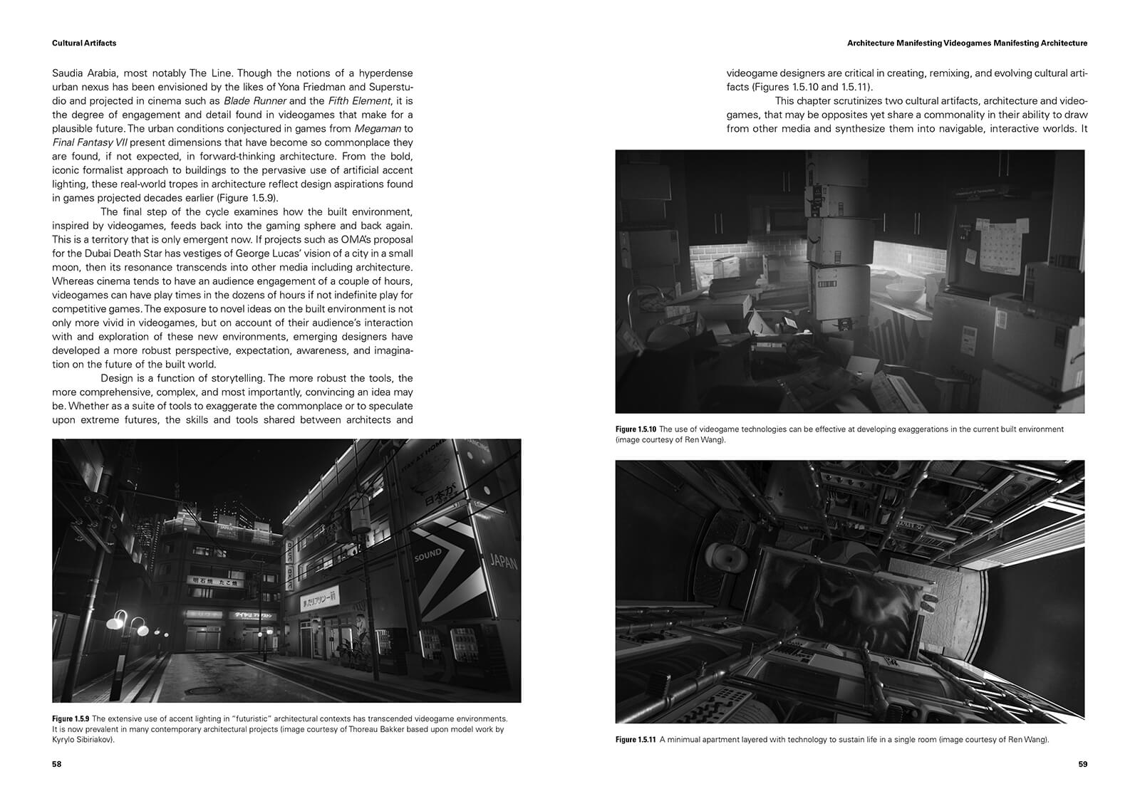 The book also makes visible a growing field of practitioners—including architects who practice with game engines; game designers who think like spatial storytellers and academics that employ hybrid pedagogical frameworks—fluidly moving between these fields, inviting readers to dwell on these examples and be inspired to create more hybrid spaces that draw from one another. The book lays out several opportunities to tangentially explore the underlying as well as explicit themes of worldbuilding methodologies for physical and virtual architecture, some of which are reflected on in this book review.