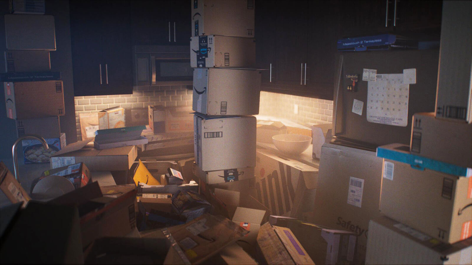 Wait, are these...outlines? Objects suspended in cuboidal wireframes – are they digital overlays, or projections of a fractured psyche onto physical space?