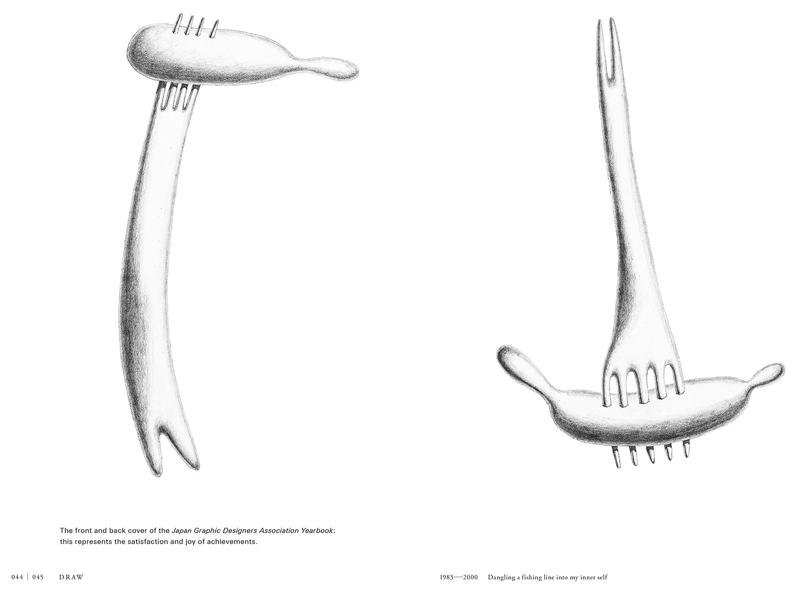 The four sections in the book sketch out Hara’s career from 1983 to the present while offering insights into the philosophies that guide his design practice. The images move from small-scale designs for commercials, posters and visual identities for brands to larger projects ranging from exhibition designs to drawings, rendering Hara’s desire to rethink how we conceive our everyday environments, focusing on the future of homes. Hara’s list of collaborators through these minor and major projects, which includes the likes of Issey Miyake, Andrea Branzi and Shigeru Ban, testifies to the sheer breadth of his portfolio, amusingly depicted here only in a vague state between ideation and realisation. Some of the sketches are more abstract, in line with Hara’s belief that sketching is essentially incorporeal thought rendered on paper. For instance, the quick, dynamic sketches for the Tokyo Olympics that Hara has reproduced in the book almost feel like they’re in motion. Similar to these are the very first sketches in the volume, meant to depict tangled fishing lines. Produced when Hara was starting out as a designer, a caption notes that these are simple renditions of whatever was in the designer’s head, “as if exploring the qualities that define [him]”. They suggest that the act of drawing is perhaps a practice of untangling the knots in one’s mind, arriving at something like clarity for a ‘what if’.