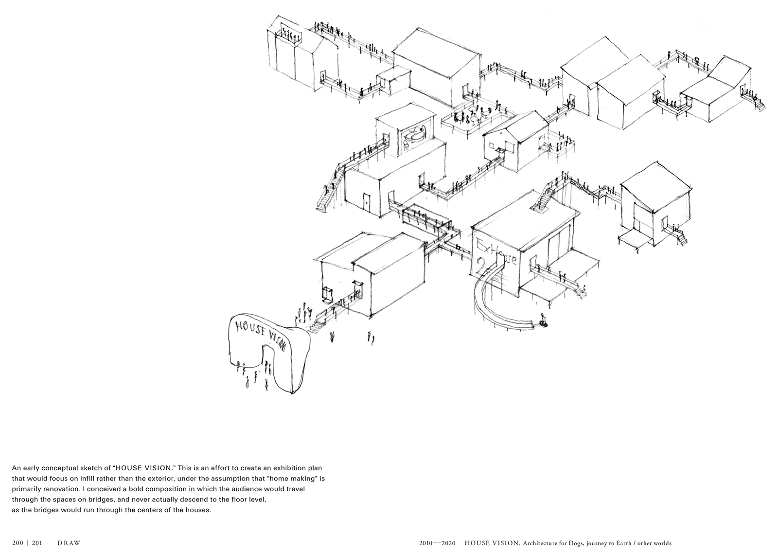 The more ambiguous renditions of ideas are followed by Hara’s drawings exploring book covers, packaging designs, advertising work and editorial storyboards. For instance, in the second section (2000 – 2010), Hara includes numerous sketches and iterations created for the 2005 Aichi Expo and the 2008 Beijing Olympics logo competitions. This section also includes Hara’s sketches of buildings, echoing his inherent interest in architecture and his desire to challenge how we interact with the built environment. The third section (2010 – 2020) expands on this theme, with Hara revealing the processes that resulted in HOUSE VISION, an exhibition that dwelt on the house as an assemblage of industrial processes and social issues. Hara’s vision for the exhibition, which was put on display in Tokyo in 2013 and 2016, in Beijing in 2018, and Seoul in 2022, was to bring together ‘business, architects and creators’ to collectively think about the future of residential design. In the sketch, readers see him thinking through an experimental exhibition layout where visitors would move through the space on elevated walkways. The section also details Hara working out MUJI’s branding for that period, where he hoped to develop a global perspective on contemporary life. Sketches detail his journeys to Indonesia’s Raja Ampat Islands and the Galápagos Islands, with him contemplating how we may preserve the natural world. These sections move towards larger ideas about eco-consciousness, sustainability and the relevance of the local—craftsmanship, culture and resources—that Hara hopes to draw out and explore in his work going forward.