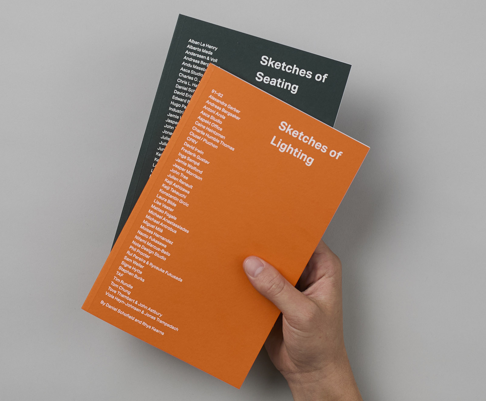 The book continues the authors’ earlier project, Sketches of Seating, which paired an early drawing of a chair design with its final form. The new book follows the same simple structure – a preliminary sketch on one page, the completed lamp on the opposite page. The restraint of the format creates an intimacy that doesn’t need explanation. It feels like being invited into someone’s notebook. Kearns’ eye for clarity and balance shapes the design of the book, giving each image room to breathe, while Schofield’s sensitivity to the creative process anchors the concept.