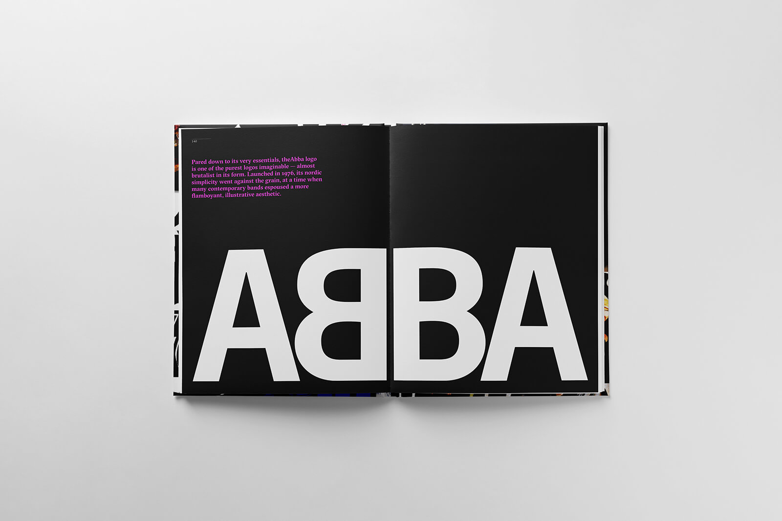 What opens the show is The Beatles’ ‘drop T’, a crisp black logotype sketched by London’s Drum City owner Ivor Arbiter and hand-painted by local sign painter Eddie Stokes for £5, turning a typographic pun on “Beat” into what is arguably the first rock band logo in history. ABBA’s mirrored B, a balanced logo designed by Swedish art director Rune Söderqvist in 1976, was not just a neat trick of symmetry, as Logo Rhythm reveals: it was a stage-ready emblem, for a band whose entire presentation was precision-engineered pop. “Pared down to its very essentials, the ABBA logo is one of the purest logos imaginable,” states Logo Rhythm.
