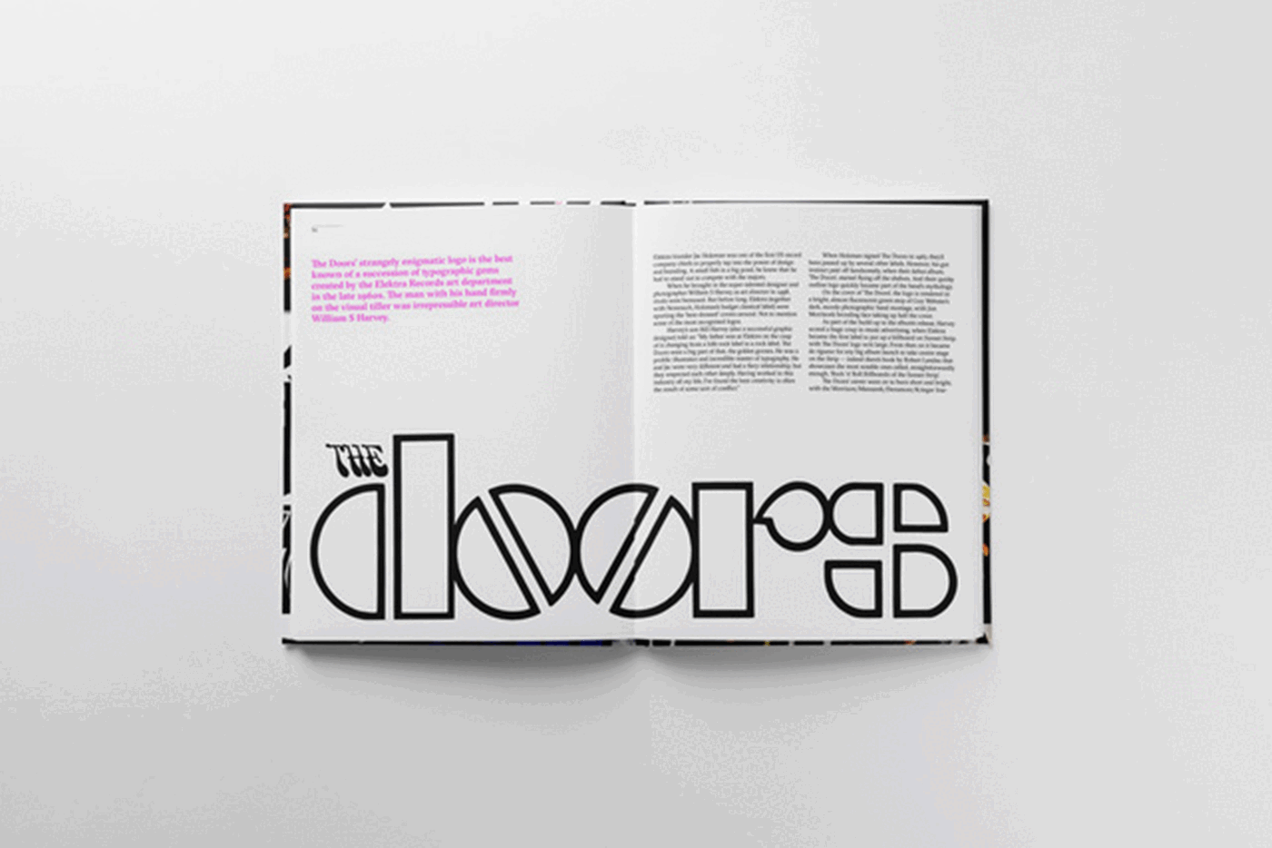 The Doors’ outline logo, by Elektra Records art director William S Harvey, was all stark geometry and oversized lettering: blocky, architectural forms paired with imperfect symmetry, a “perfect imperfection” for a band steeped in the strange. “If you take a good look at it, the logo is surprisingly rudimentary, the main letters made up of crude, blocky rectangles, half-circles and quarter-circles. The two o’s, with their mirrored diagonal lines, could possibly be seen to resemble pills,” the author shares.