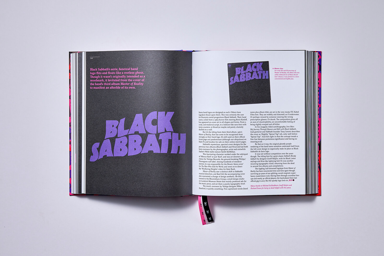Heavy rock’s logos get their due in the book too. Black Sabbath’s “eerie, funereal band logo flits and floats like a restless ghost”, making its menace and darkness marketable. Led Zeppelin’s visual calling card, the four mysterious symbols from IV (each member’s personal sigil), remains a masterclass in myth-making, a graphic design that’s more riddle than brand, yet instantly recognisable on bootleg tees and arena backdrops. Metallica’s sharp-edged wordmark, introduced on Kill ’Em All (1983), stretched the M and A into dagger-like points or ‘bolts’, its heavy-metal typography as aggressive and uncompromising as the music.