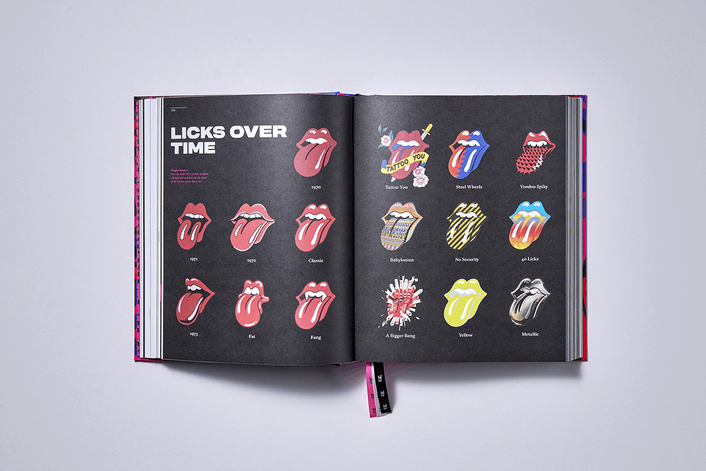 And then there’s John Pasche’s ‘playfully provocative’ Rolling Stones tongue and lips, created in 1971: “perhaps the ultimate band logo… among the world’s most potent and recognisable symbols”. As Garrett notes, “Consistency and repetition ensure basic recognition,” and Pasche’s design has thrived on both. “A glossily pert pair of lips, a lasciviously lolling tongue and a top set of pearly whites. Dispensing with the need for anything as gauche as typography… [The Lick] has become a universal symbol of rock ’n’ roll excess and anti-authoritarian bravado, a representation of rebellion like no other,” the book relays.