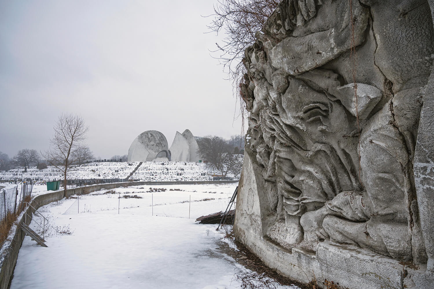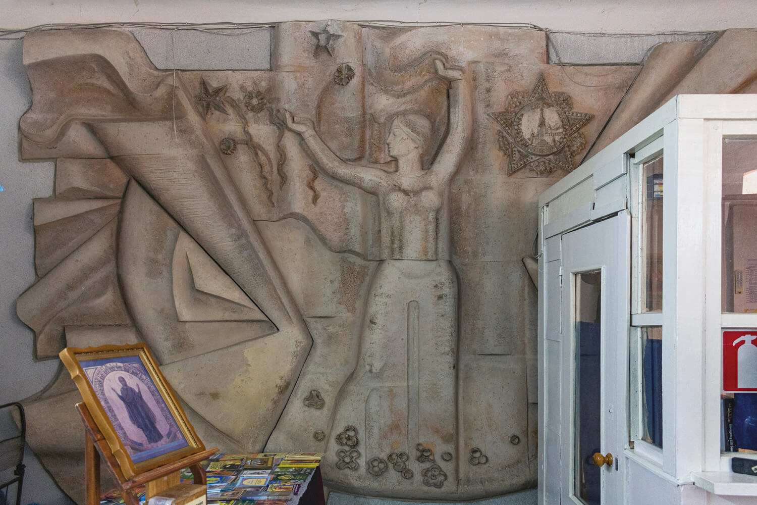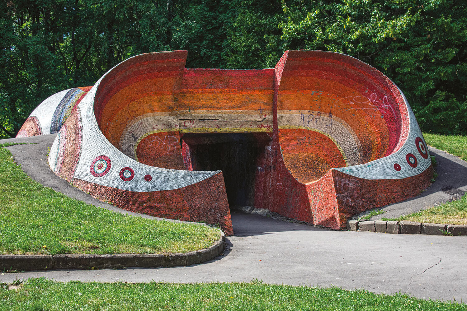 The Kyiv Crematorium, designed in the late 1960s and pictured in the book, embodies precisely this layered history. Its expressive sculptural wall, confronting war, fascism and Stalinism was concealed under concrete by Soviet authorities. Today, activists chip away at that covering, revealing not just the artwork, but the truths it holds.
