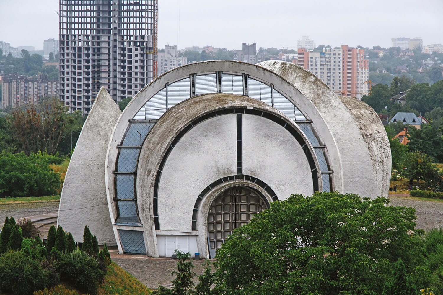 Interestingly, ‘Ukrainian Modernism’ is not a formal term in architectural theory. Linguistically speaking, in Ukrainian—as in Russian or Spanish—‘modernism’ usually referred to the decorative styles of the early 1900s, known elsewhere as Art Nouveau. Here, it denotes the international Modern movement that emerged across Europe after World War I, with Ukrainian cities like Kharkiv, Dnipro, Kyiv and Odesa playing a part often overlooked in mainstream histories. As Soloviov puts it, “It’s modern architecture, and it’s in Ukraine, that’s basically it.”