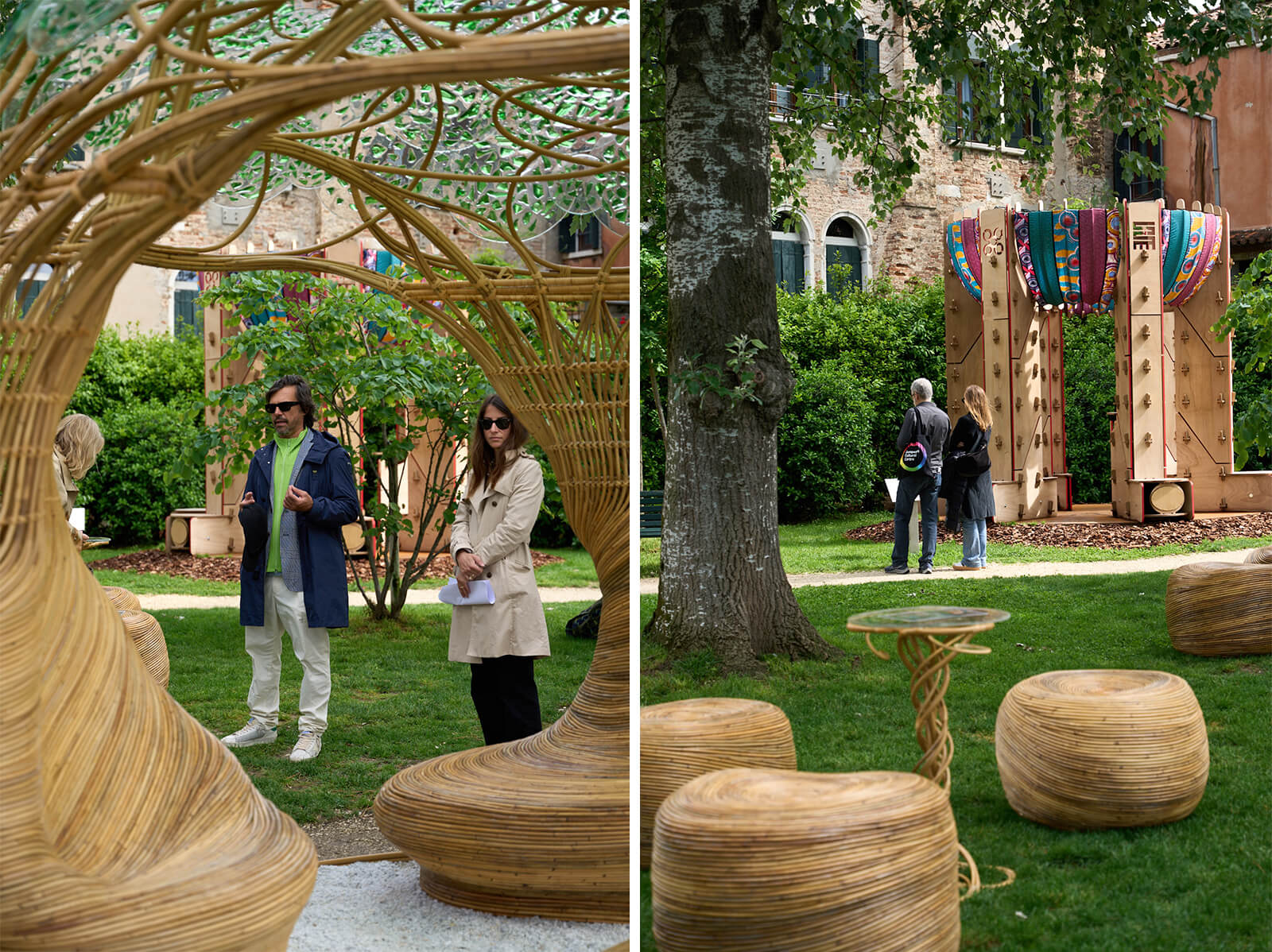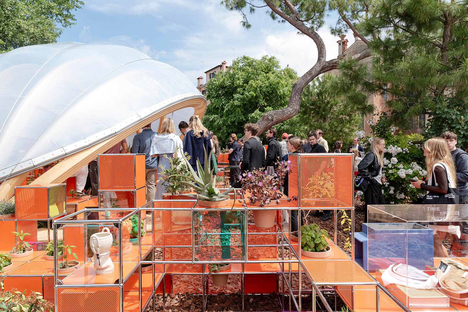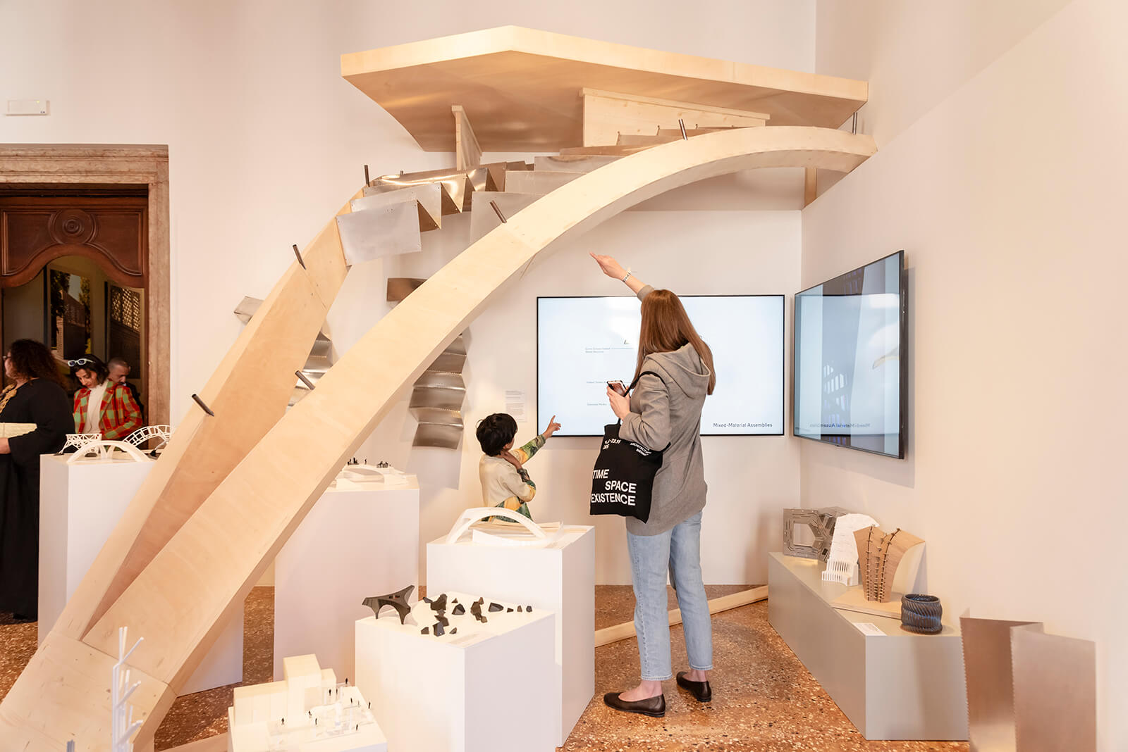For a world in the midst of multiple global conflicts and a pressing climate crisis, the theme of the seventh edition of the biennial architecture exhibition run by the European Cultural Centre—Time Space Existence—treads familiar ground: Repair, Regenerate, Reuse. This alliterative triad echoes the structure of the exhibition itself, split across three sites, comprising two grand Venetian palazzos and the Marinaressa Gardens.
