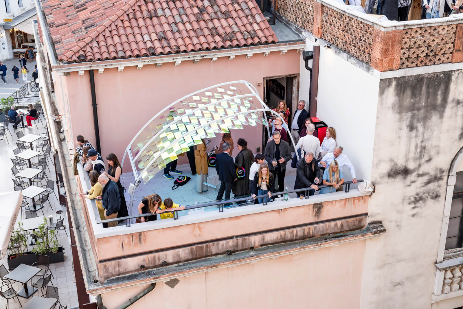 Walking into the main seat of the exhibition in the 15th-century Palazzo Bembo, a series of sculptural forms stand silhouetted against the arched Gothic windows. A large-scale installation by Henriquez Partners Architects and ARUP, the designs are revealed to be futuristic buildings, modelled on the structure of a glass sea sponge and focused on harnessing the power of the elements using concepts like geoexchange and photovoltaics. In another installation, Tender Soul of Ocean: A Marine Climate Preservation Initiative, the Taiwan-based WHYIXD transforms scientific data into an immersive experience. Local wind data captured using an anemometer is converted into a shifting light pattern using LED filaments. The result is a hypnotic performance where light shifts and shimmers like flowing water, the rhythms of nature made visible in new ways.